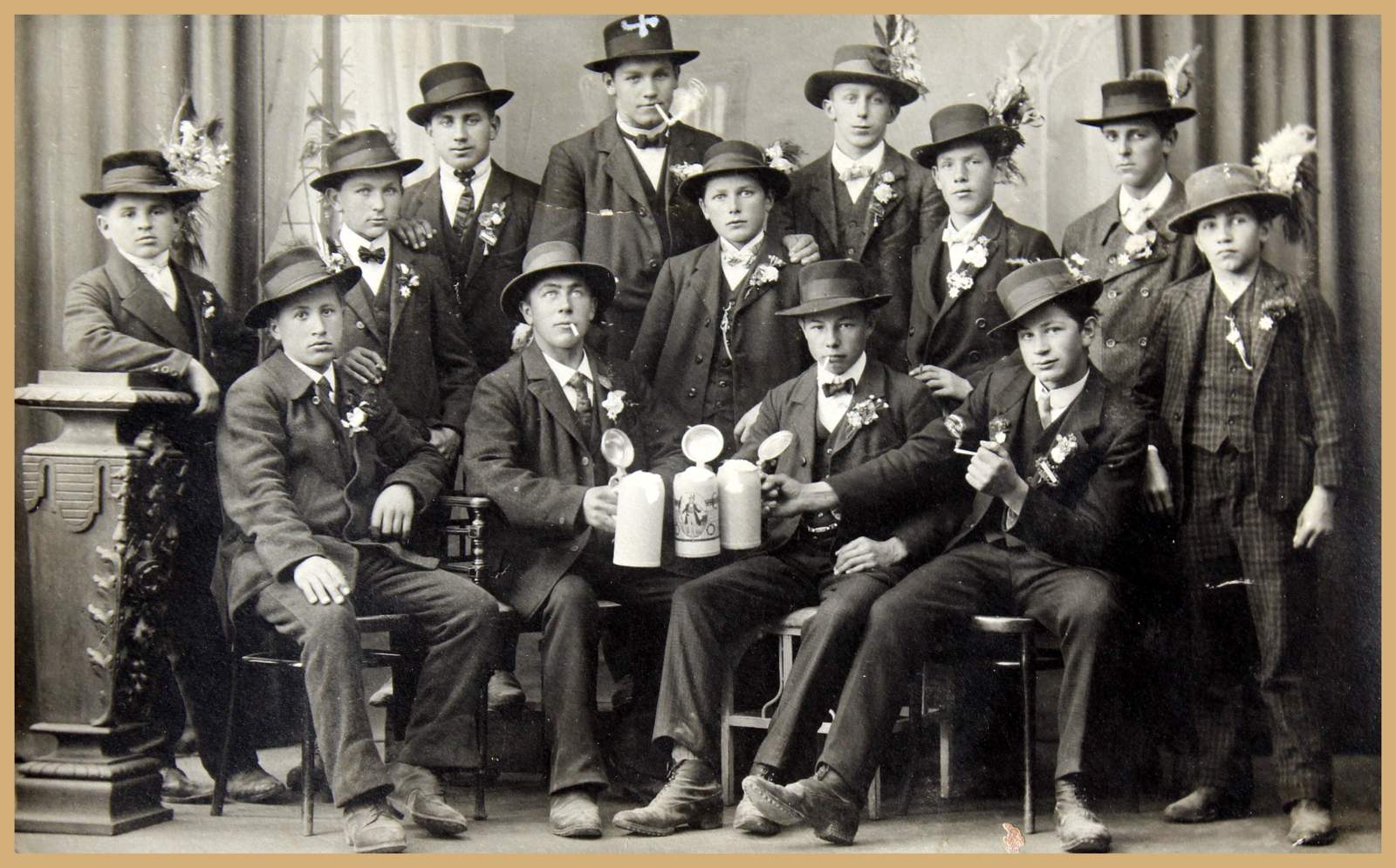 Musterung des Jahrgangs 1900, Max Maier mit Zigarette in der Mitte