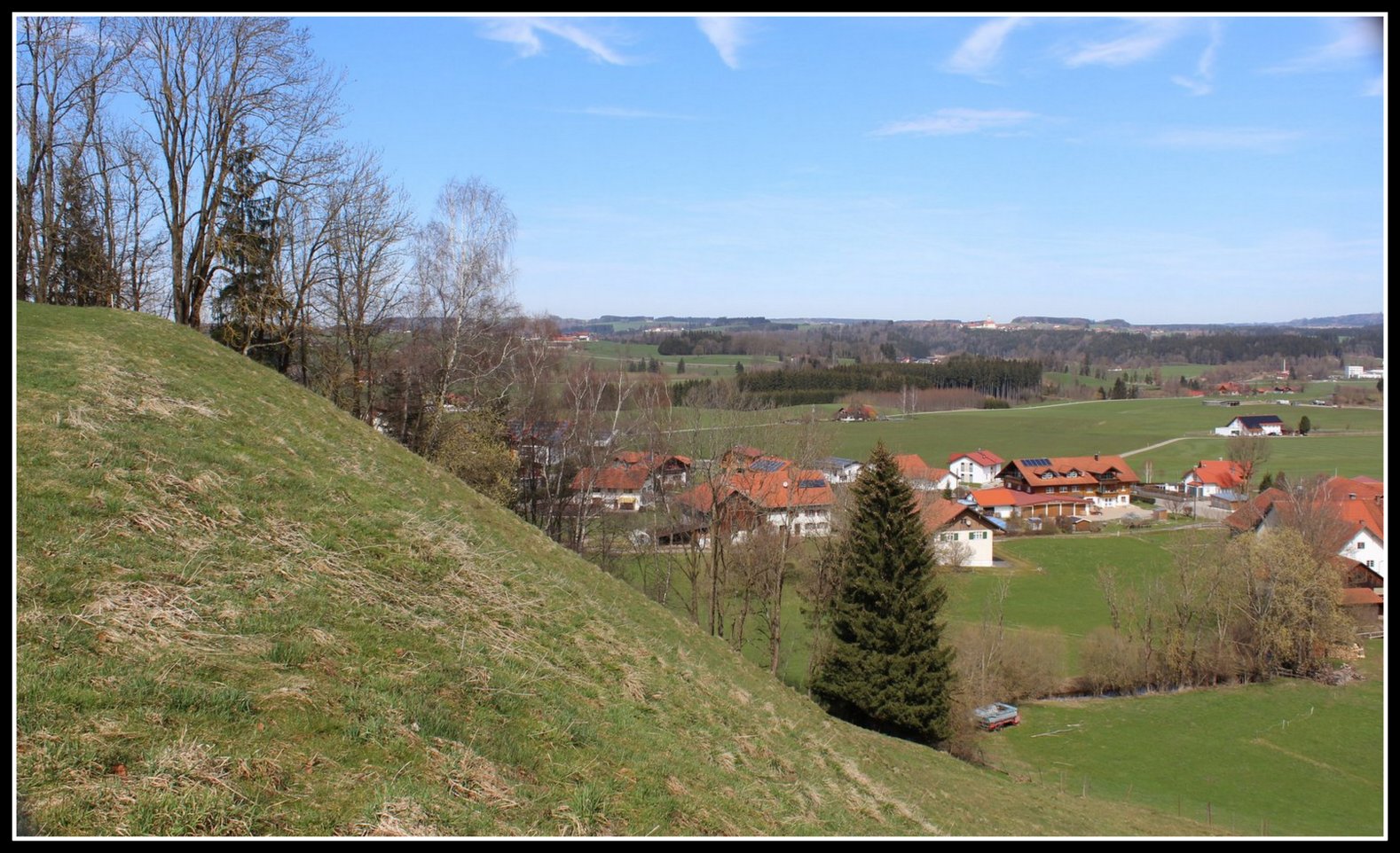 Groß und Klein sind zum Hüttele hochgestiegen.  Heute gibt es das Hüttele nicht mehr. Aber der Standort und der Ausblick auf das Illertal sind nach wie vor eindrucksvoll und einen Spaziergang wert.