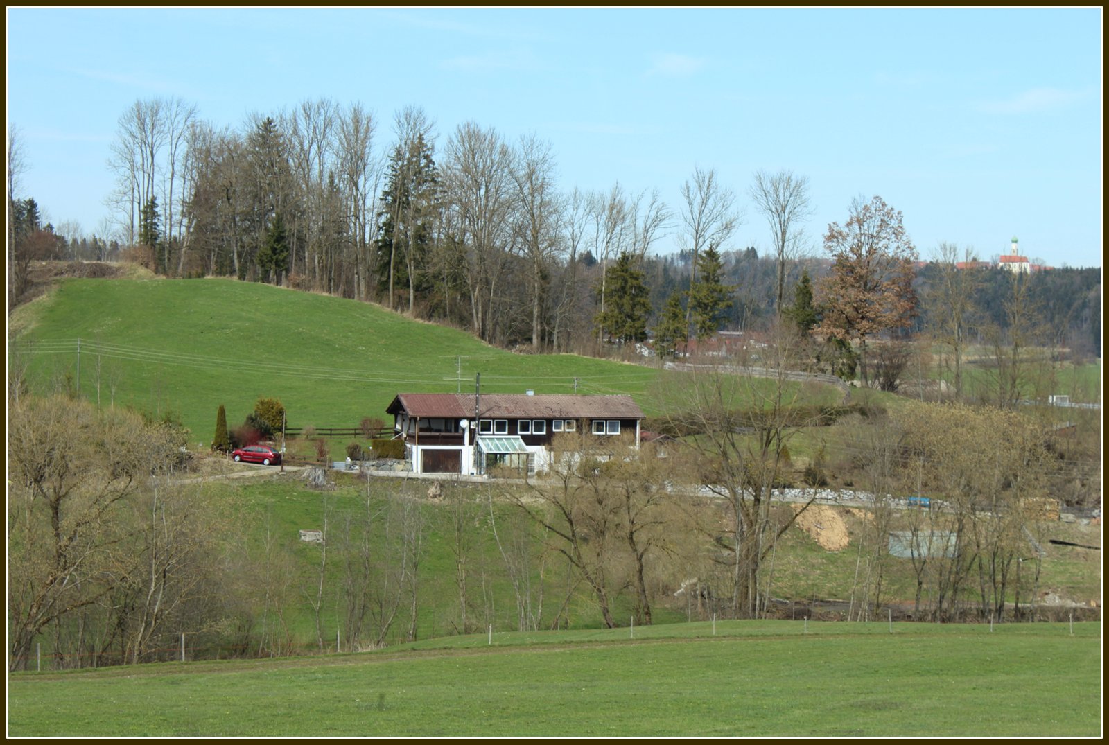 Die Straßen sind noch ungeteert. Zäune begrenzen Wege,Wiesen und Felder