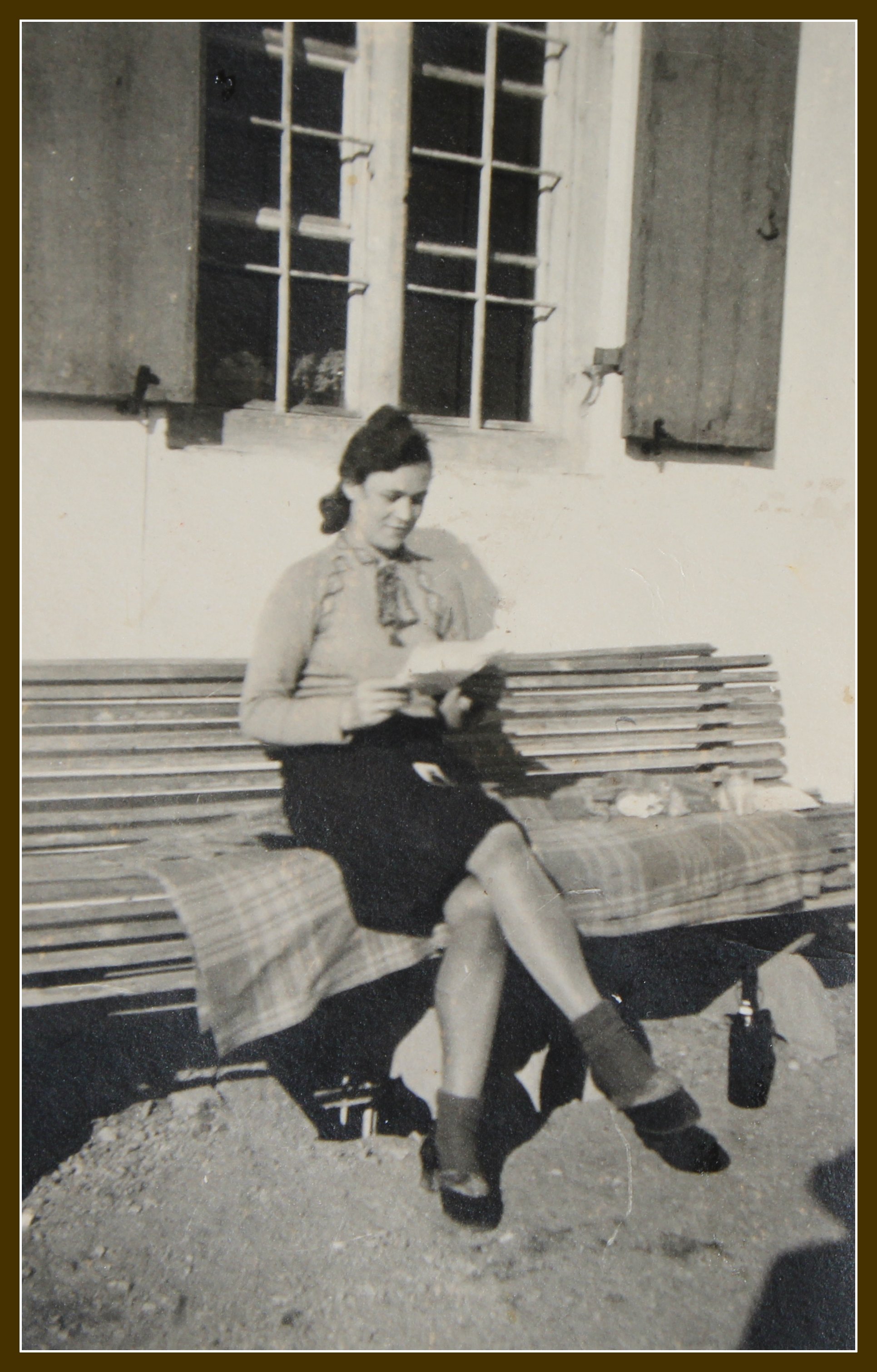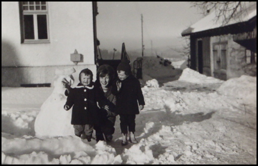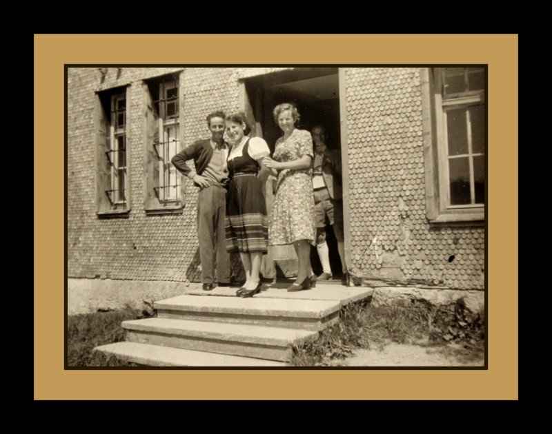 1944  Frau Gatzki und unsere Polin Mlinareik. Frau Gatzki war eine sogenannte Evakuierte. Sie musste mit ihrer Familie ihre zerbombte Heimatstadt verlassen. Dafür wurde ihnen eine Unterkunft in Bayern zugewiesen. Mlinareik war eine Fremdarbeiterin aus Polen. Sie und andere hatten oft ein nicht leichtes Schicksal.