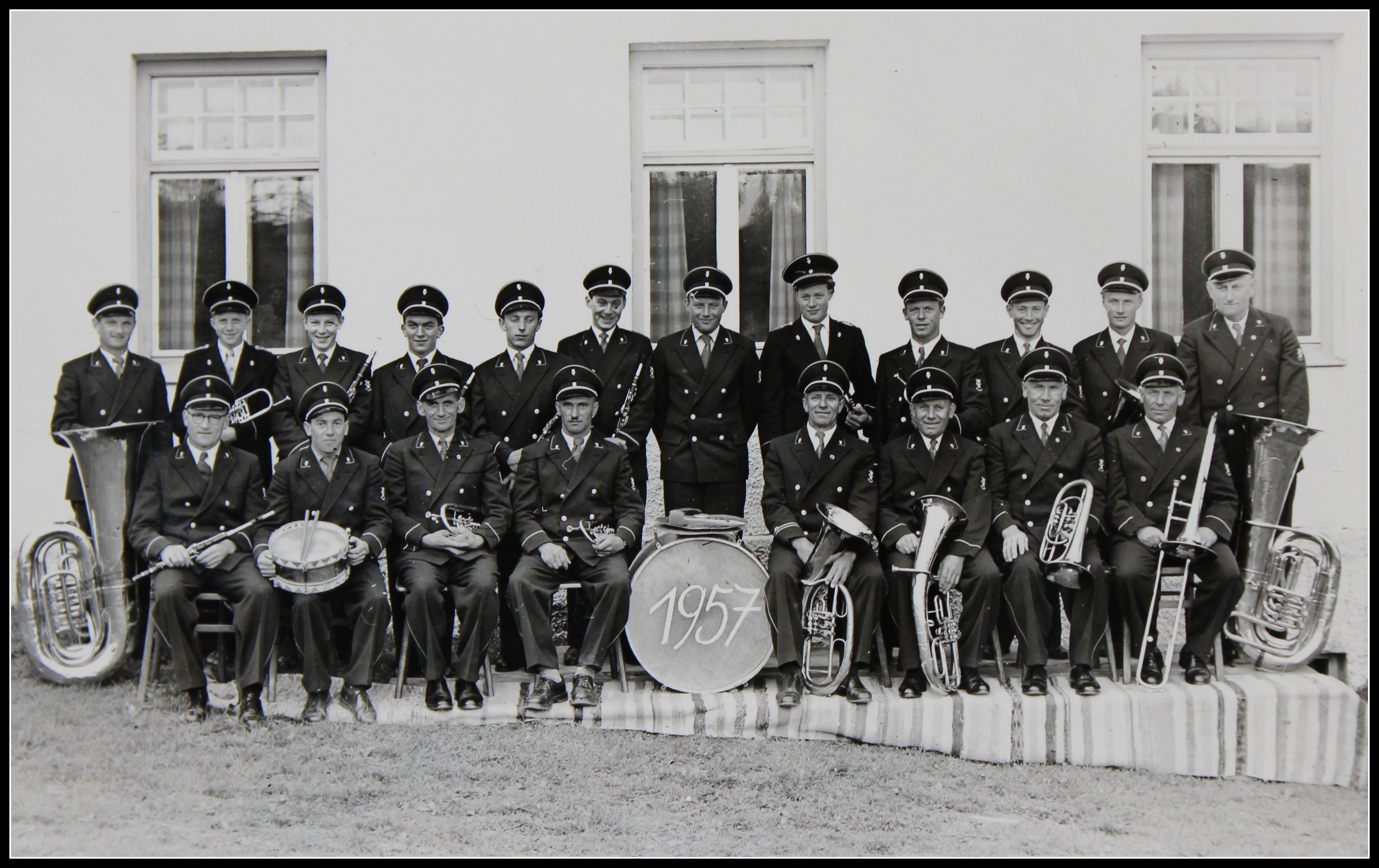 Unsere Musikkapelle Krugzell, 1957. Die Musikanten tragen noch die alte Tracht.