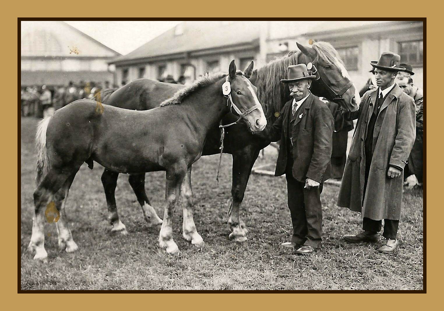 Käserei Kollerbach            Moser aus Elmatried mit zwei Pferden vor der Tierzuchthalle in Kempten