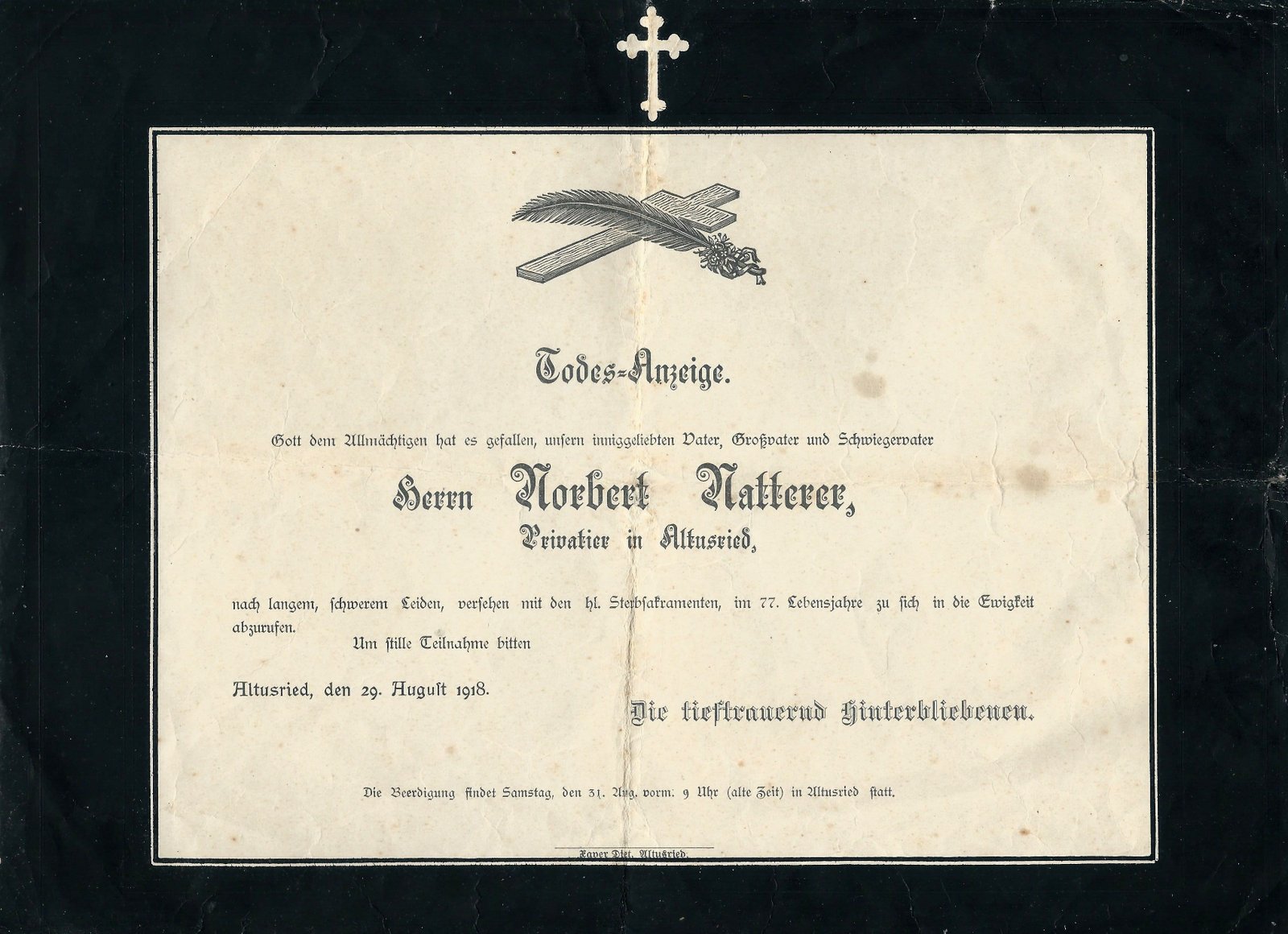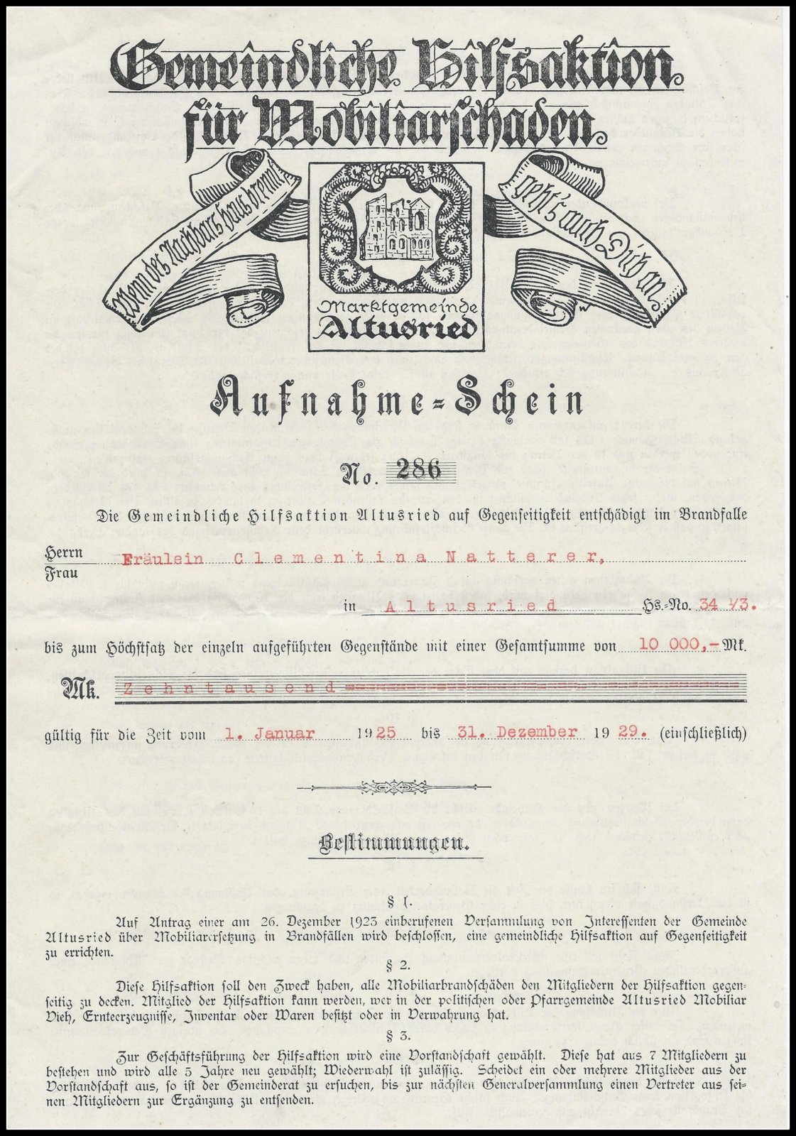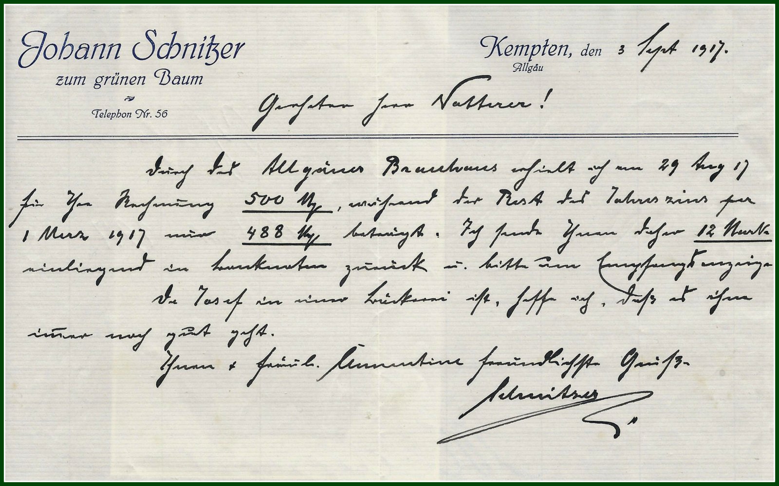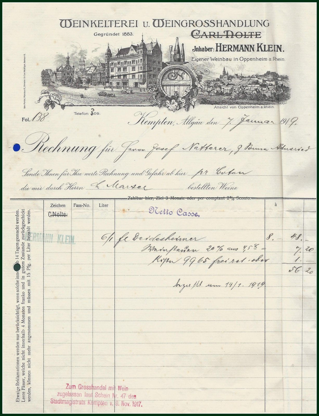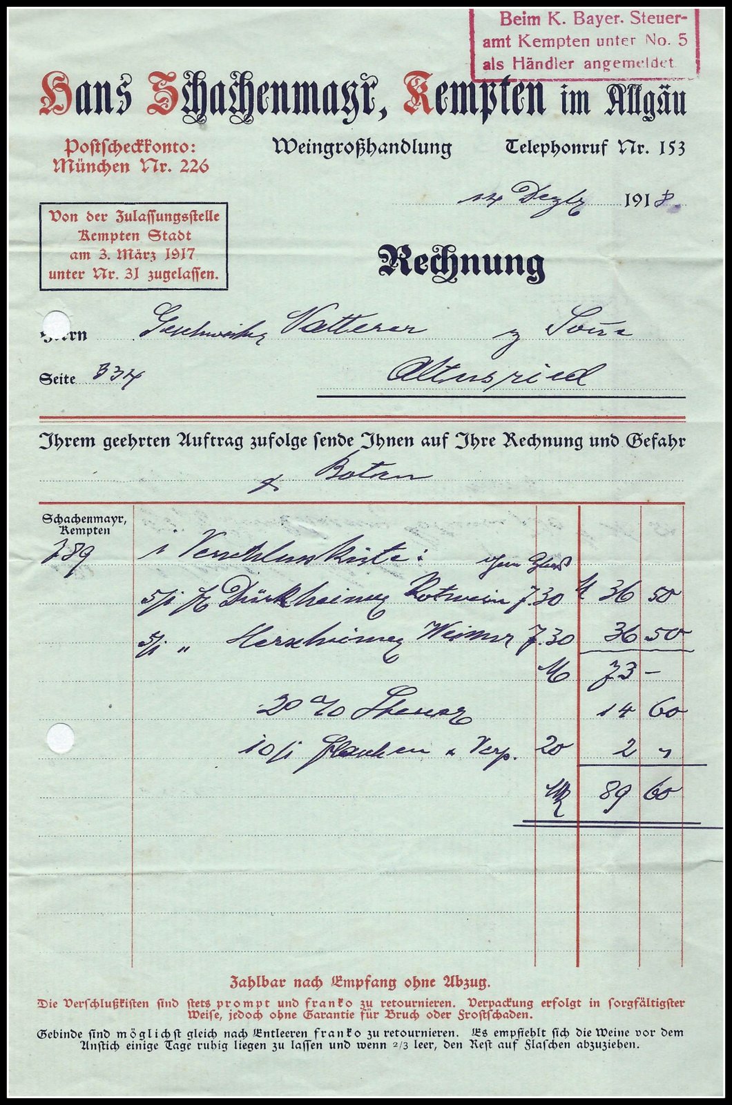 Alte Rechnungen aus den Zehner- und Zwanzigerjahren des vorigen Jahrhunderts, gestellt an Klementine Natterer, Gasthaus Sonne.