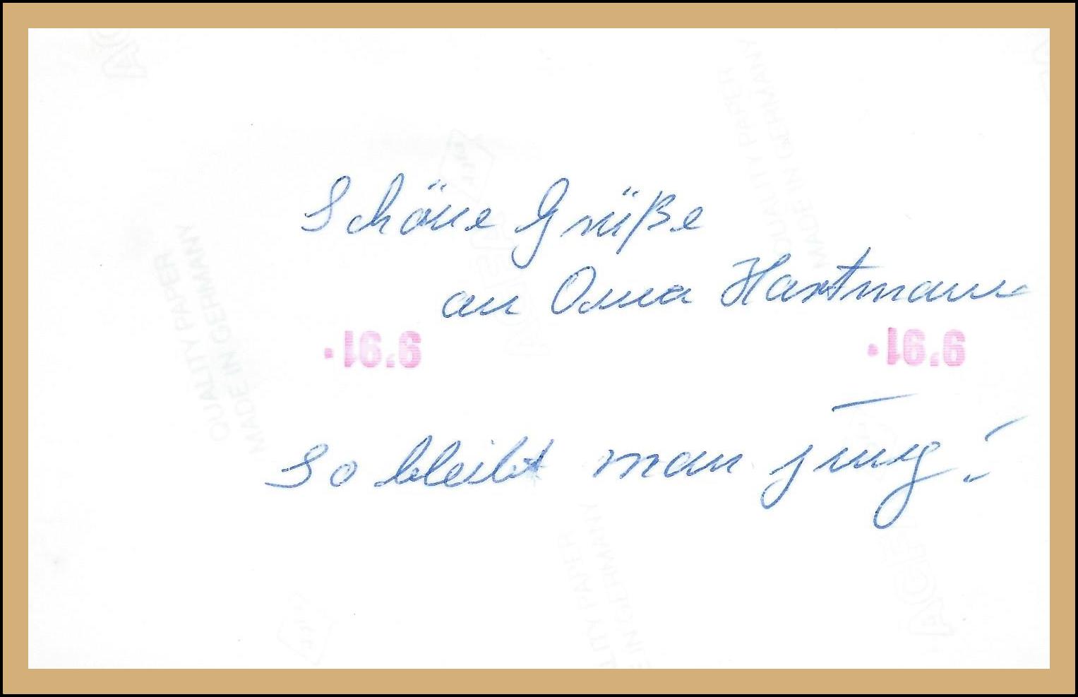 Farbfoto. Auf der Rückseite: Schöne Wünsche an Oma Hartmann.