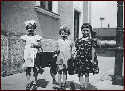 - 1940 Der erste Schultag. Vor der Schule eine eiserne Brunnensäule.