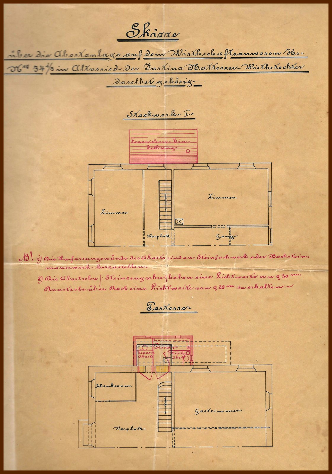 Die Vorderseite mit dem Eingang war der Kirchstraße zugewandt, die Rückseite dem Bühl. Der Bühl war eine große Wiese inmitten desMarktes.