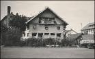 - Erweiterung der Sonne. Balkon. Blick zum alten Pfarrhof mit dem Fachwerk. Der Bühl ist nun geteert. Allmählich wird die Ostseite zum Hauptzugang.