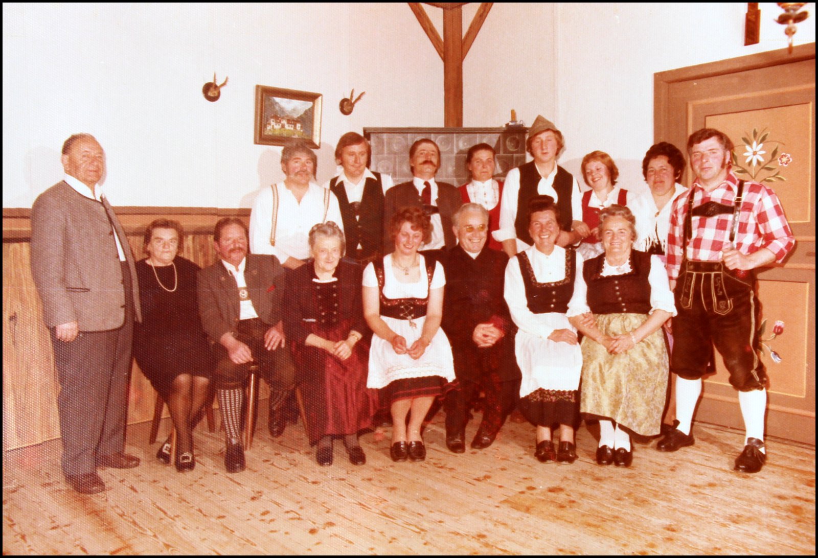 Brack Franz, Daiser Fridolin,Watko, Huber Ludwig, Bösele, Kellner Luis, Holz Karl, Serafiniak Achim, Wölfle, Natterer Sepp, Knisch Herbert, Lingenhöl Xaver, Stockinger Alfons, Kromer Peter, Schopf Hans, Frau Brack, Holz Fini, Ziegler Centa