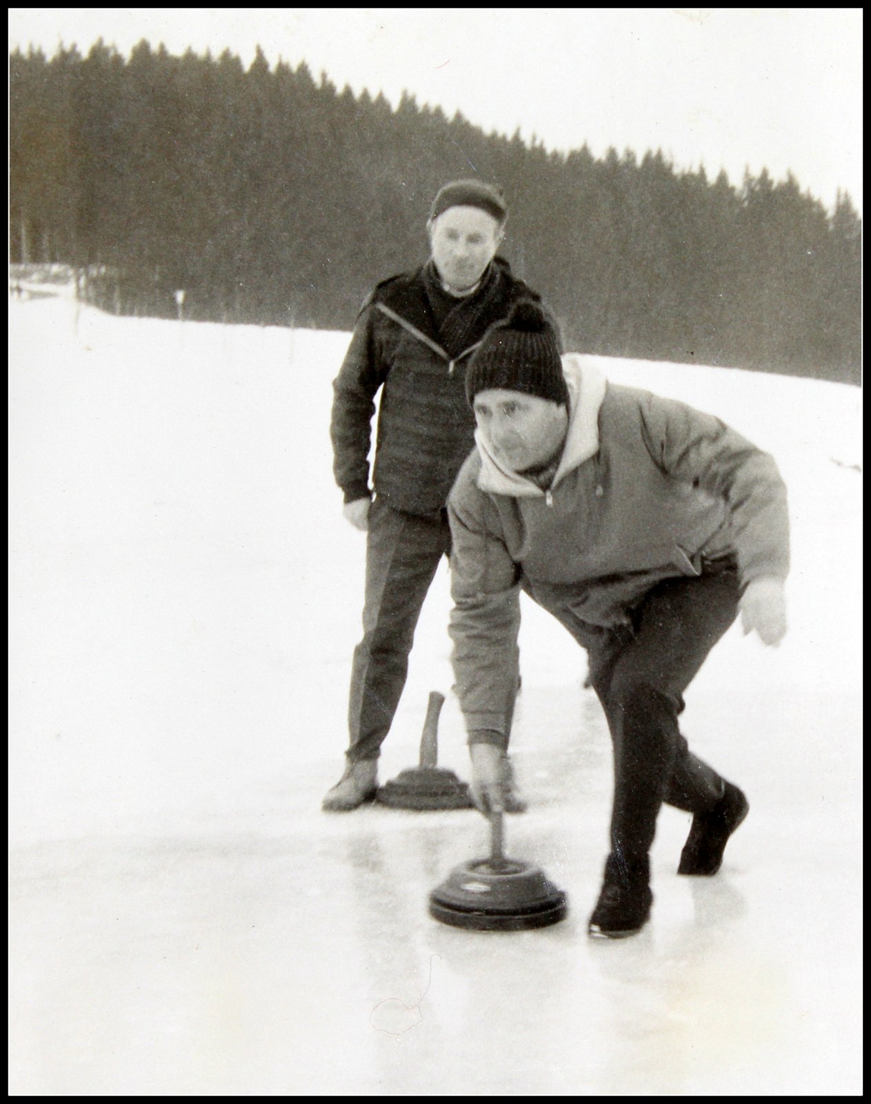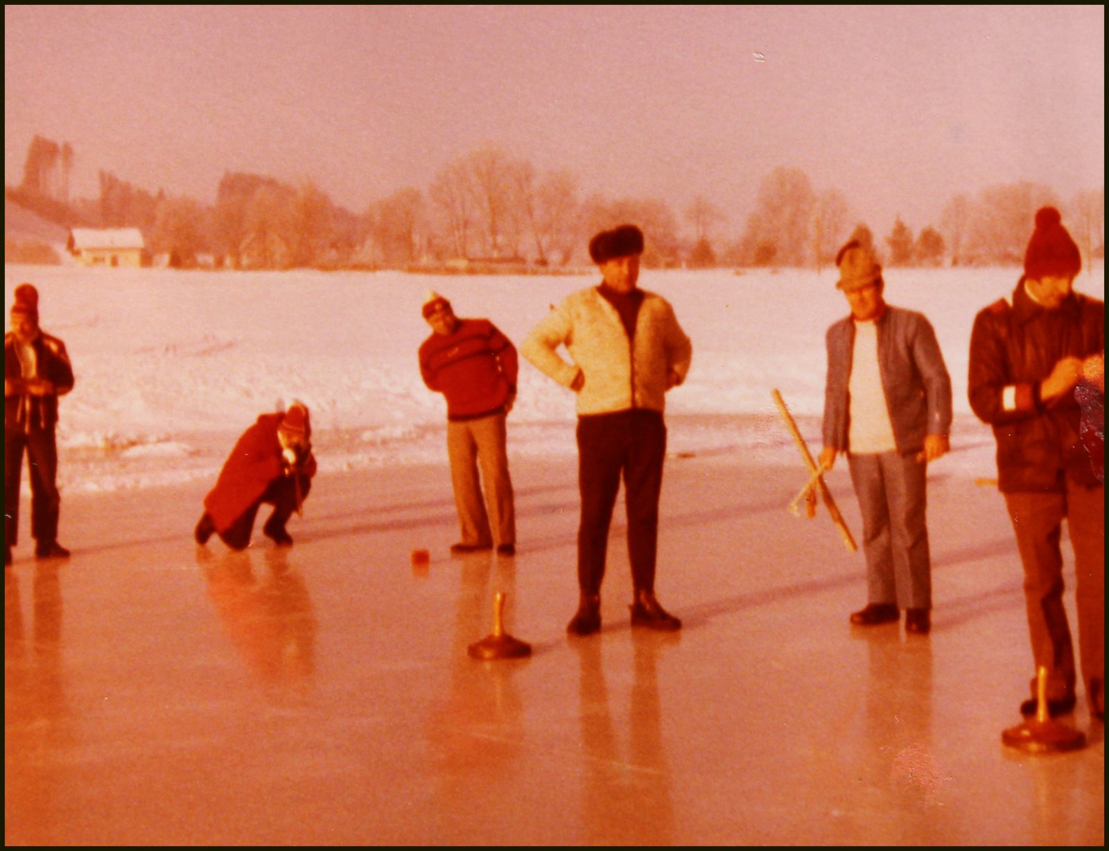 - 1964 gab es einen strengen Winter. Die Iller gefror und man konnte auf dem Eis kegeln. Es spielen Stockinger Alfons, Kellner, Schopf, Rottach,Bösele und andere waren auch dabei.