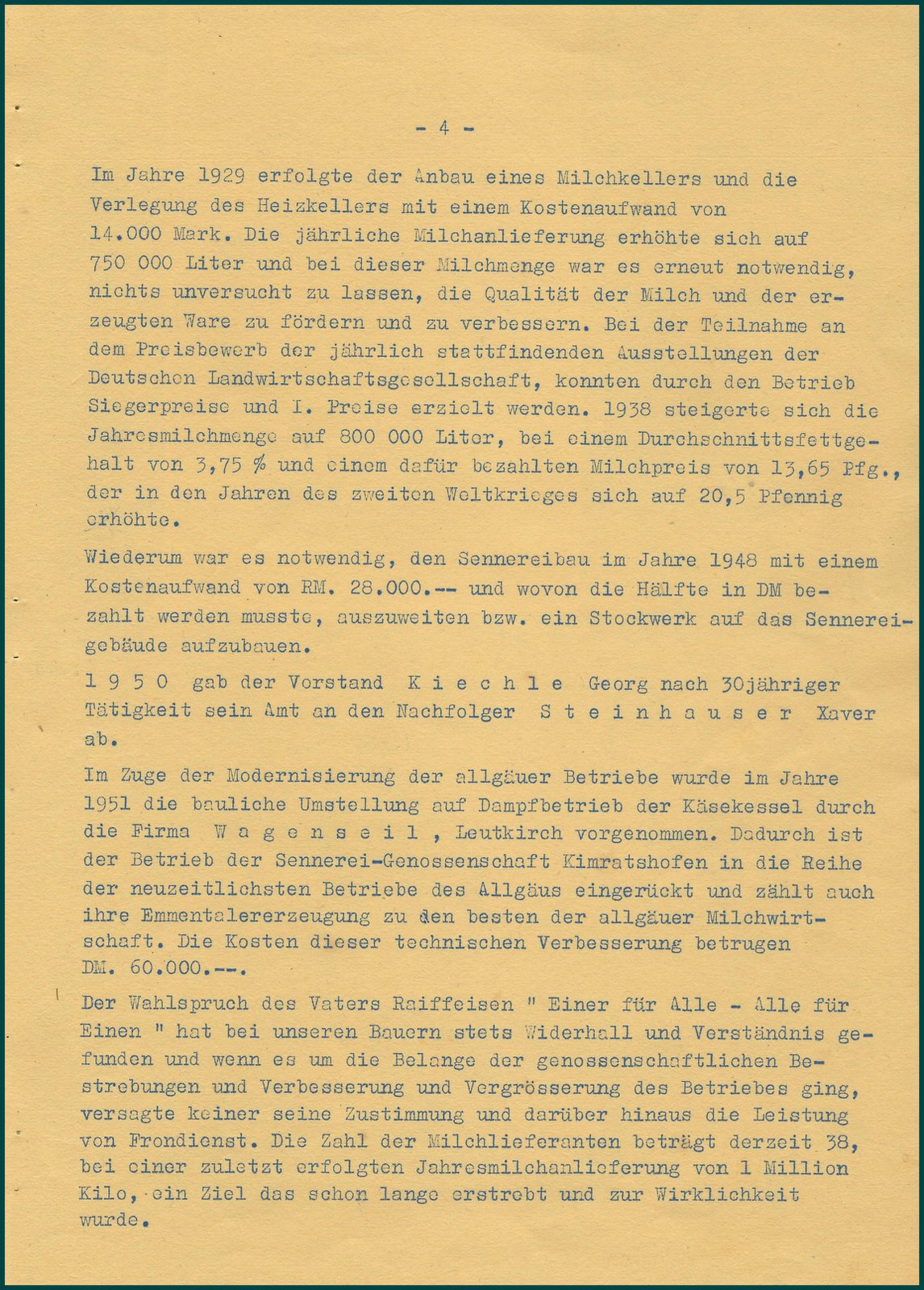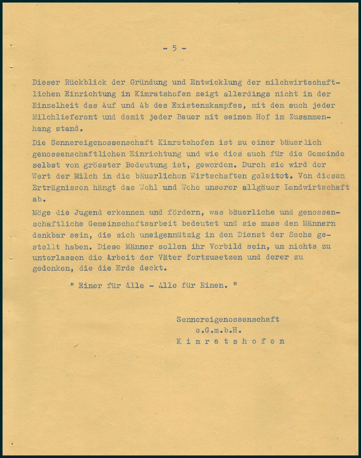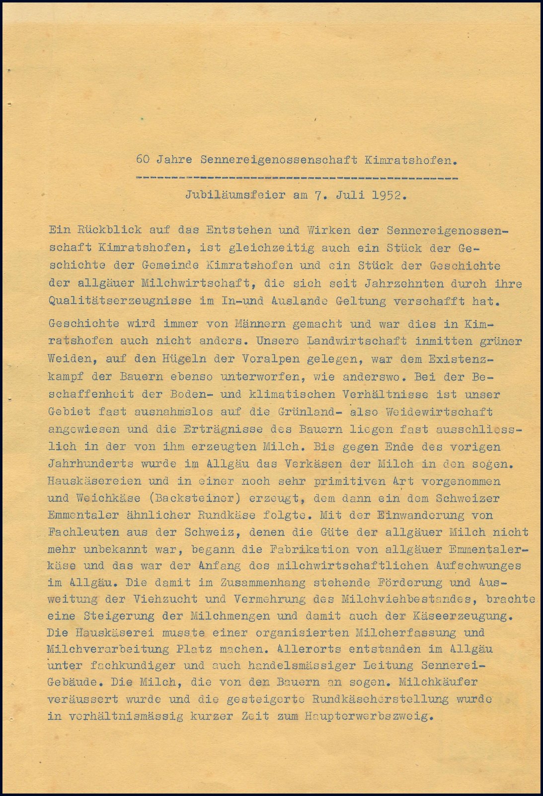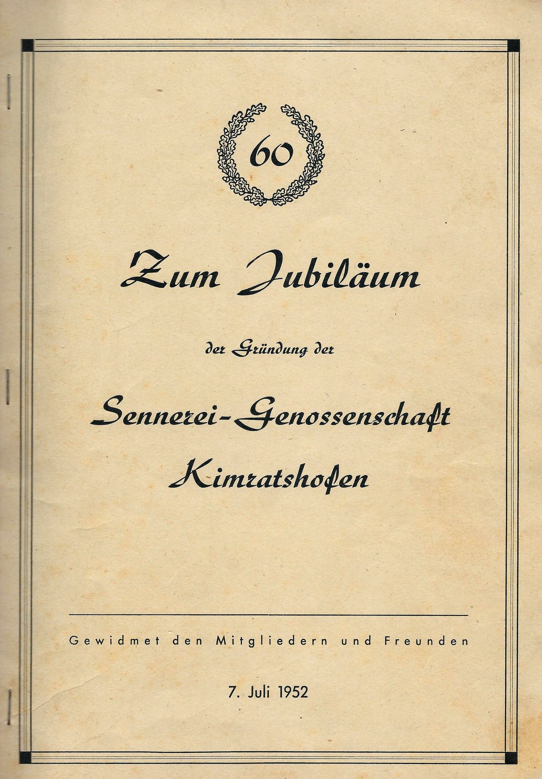 Zum 60. Jubiläum der Gründung der Sennerei - Genossenschaft Kimratshofen Gewidmet den Mitgliedern und Freunden am 7. Juli 1952