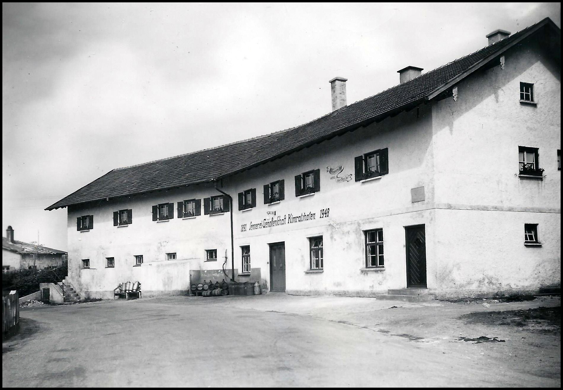 - Sennerei in Einsiedeln. Nachkriegsjahre. Der Käser Löchle steht vor der Käsküche. 1951 erfogte der Anschluss an die Genossenschaft Kimratshofen.