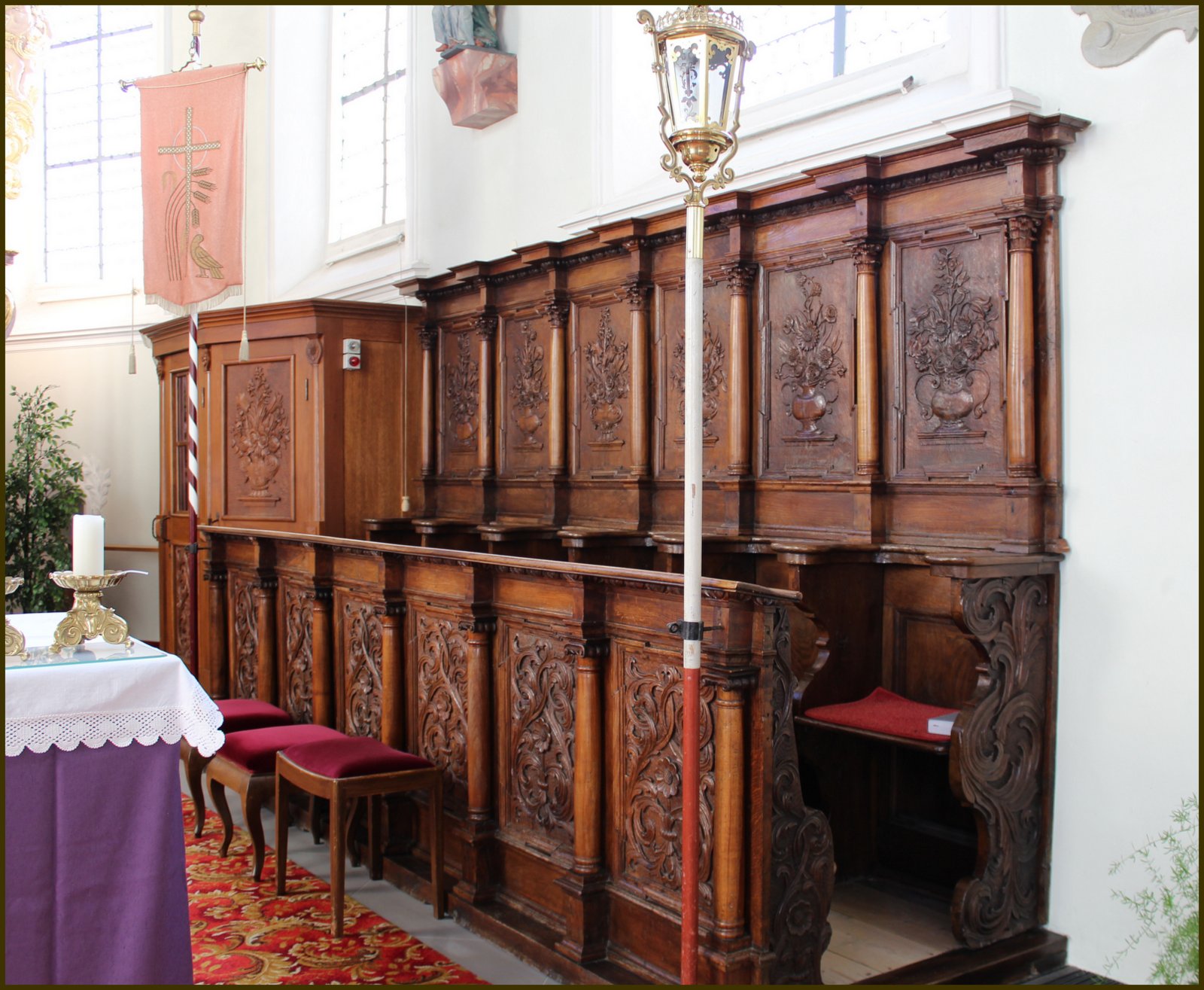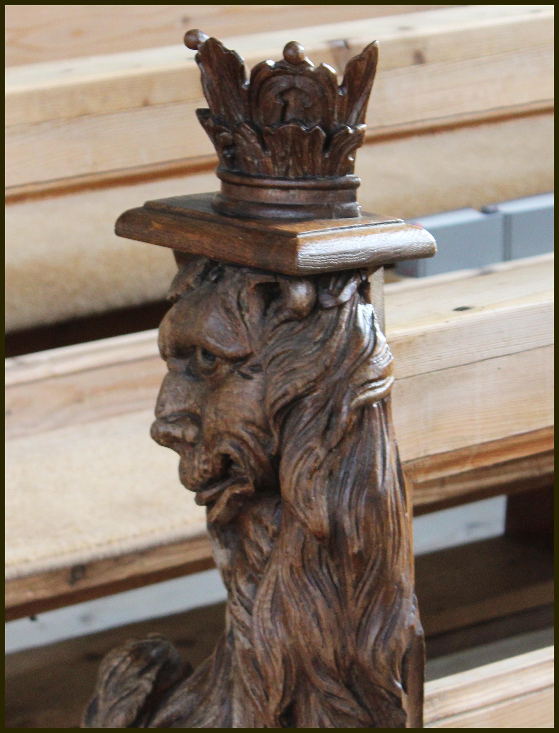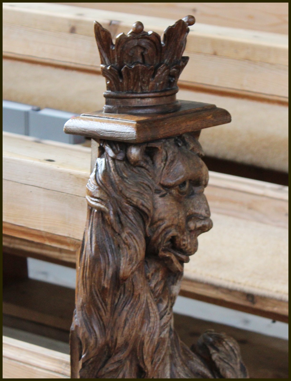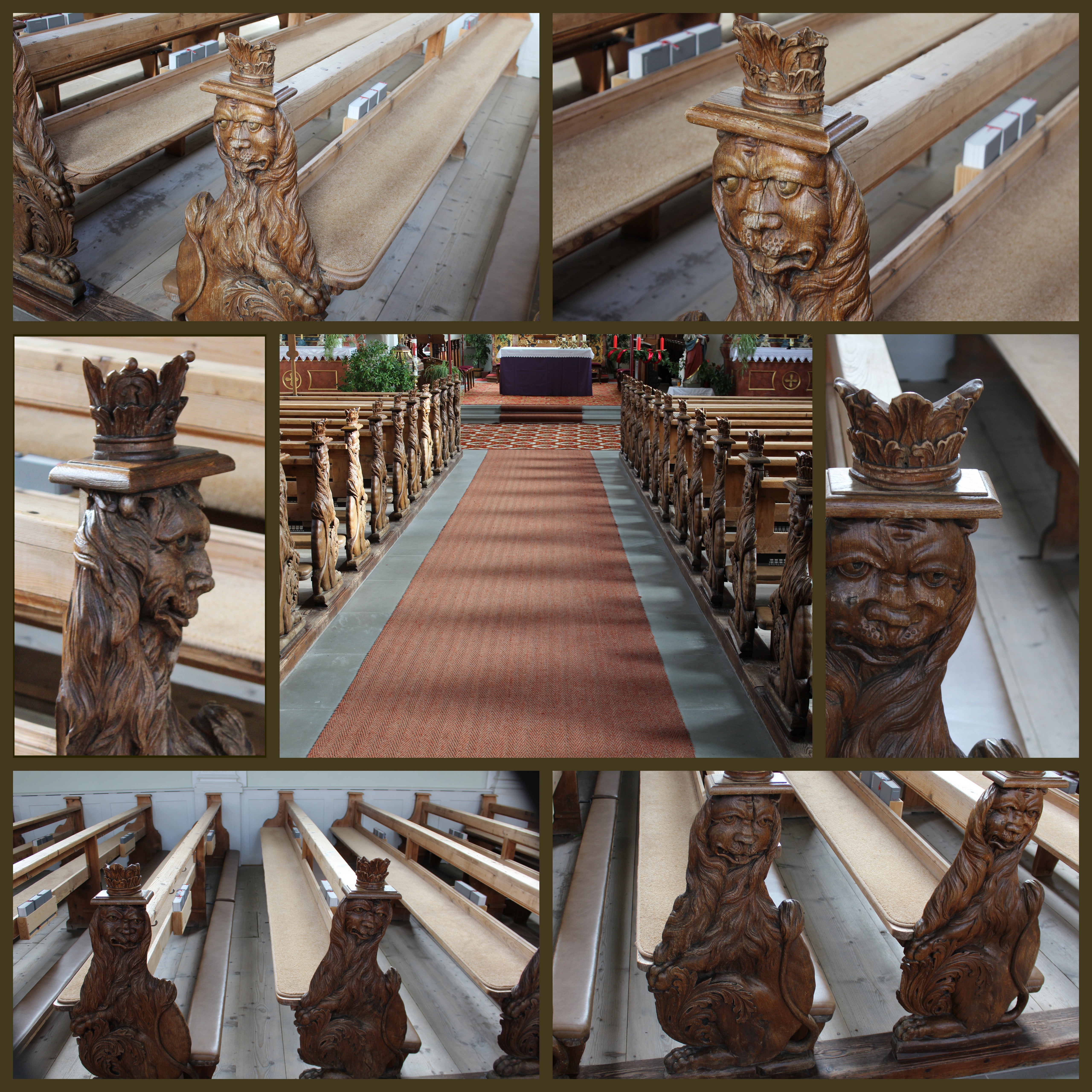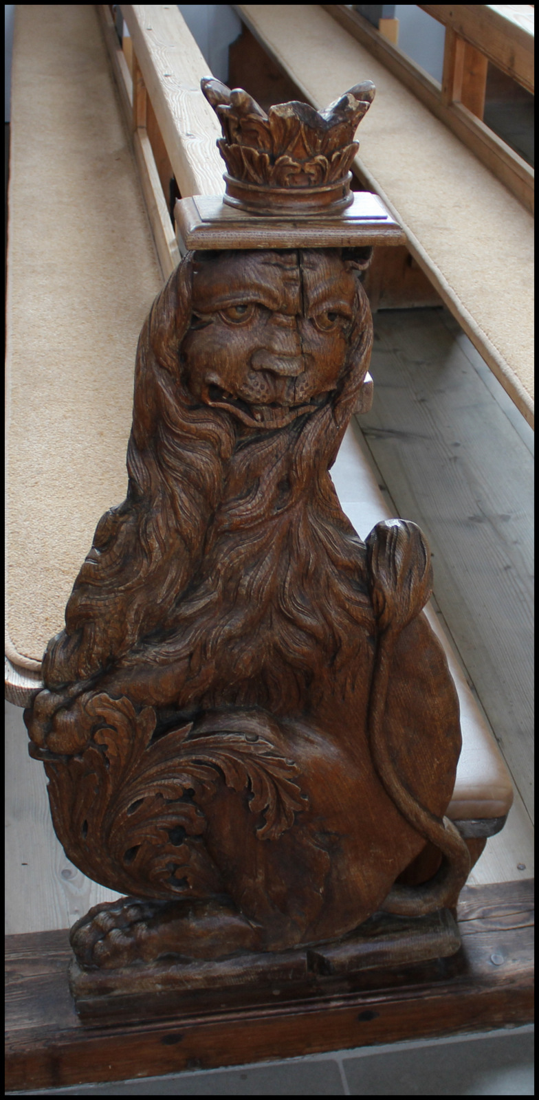 Wer die Kirche Maria Himmelfahrt betritt, dem fallen die Löwen an den Kirchenbänken auf. Es sind ausdrucksvolle Figuren, die ein geschickter Schreiner aus dem Gestühl heraus geschnitzt hat. Die Gesichter haben menschliche Züge. Als König der Tiere trägt jeder Löwe eine Krone. Die Löwen schauen grimmig in Richtung Eingangsportal, um das Böse abzuschrecken. Früher besaßen die Löwen noch lange rot bemalte Zungen. Für kleine Kinder war der Weg nach vorne durch die Löwenschar eine echte Mutprobe.