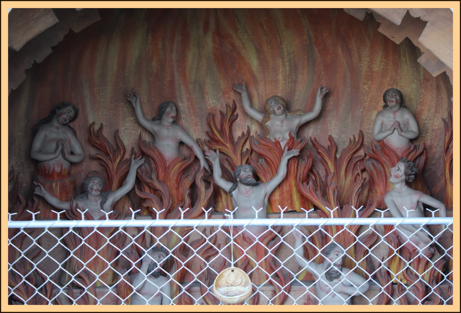 - Unter dem Ölberg eine Höhle, darin das Fegefeuer. Flammen umzingeln die Sünder, bis sie erlöst sind.