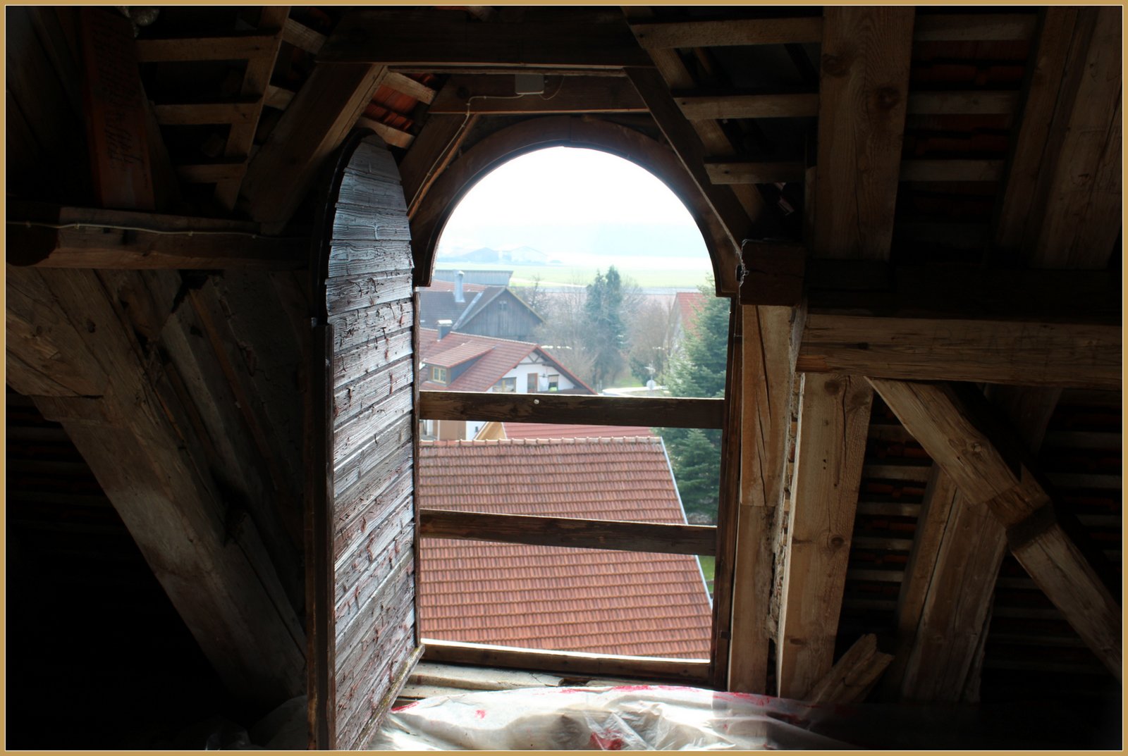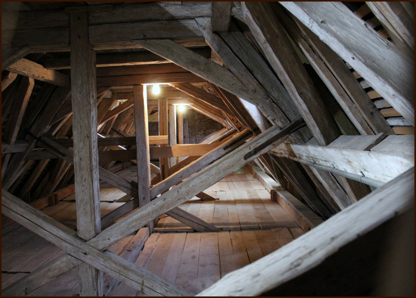 Am Karfreitag schweigen die Glocken. Dafür klappern die Ratschen. Barock- Dachstuhl.