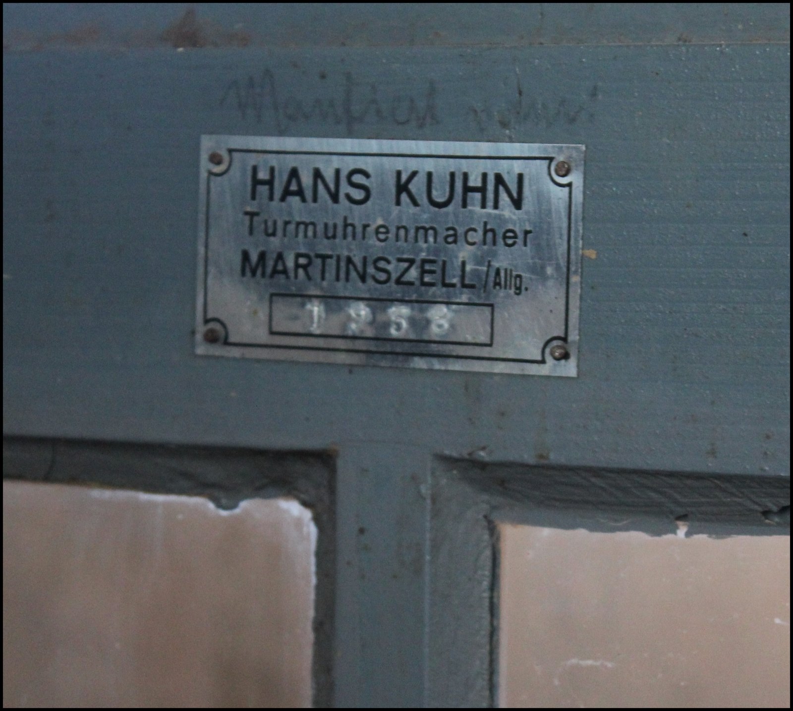 - Turmuhrmacher war Hans Kuhn Martinzell/Allgäu. Anno 1956