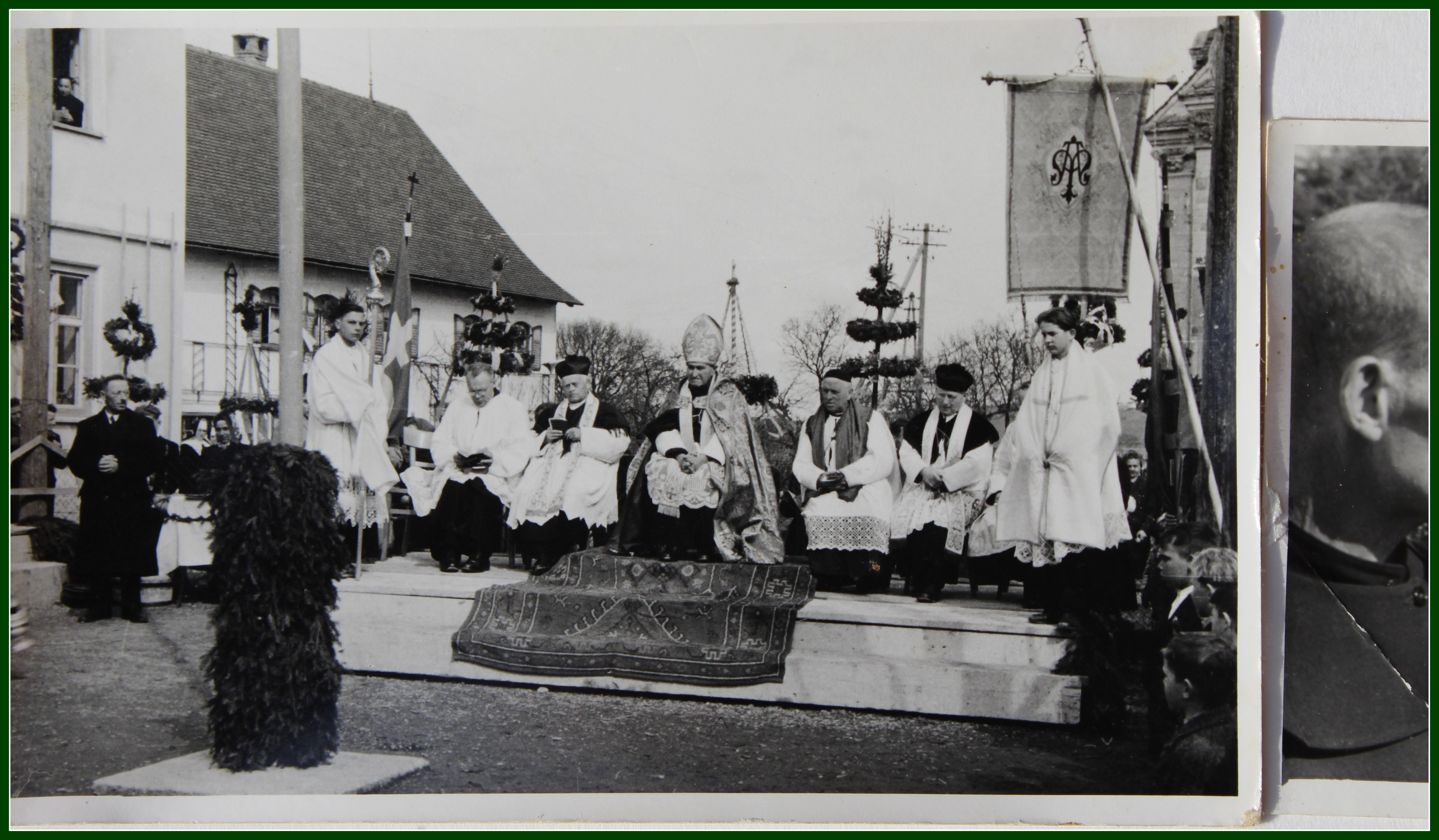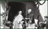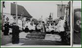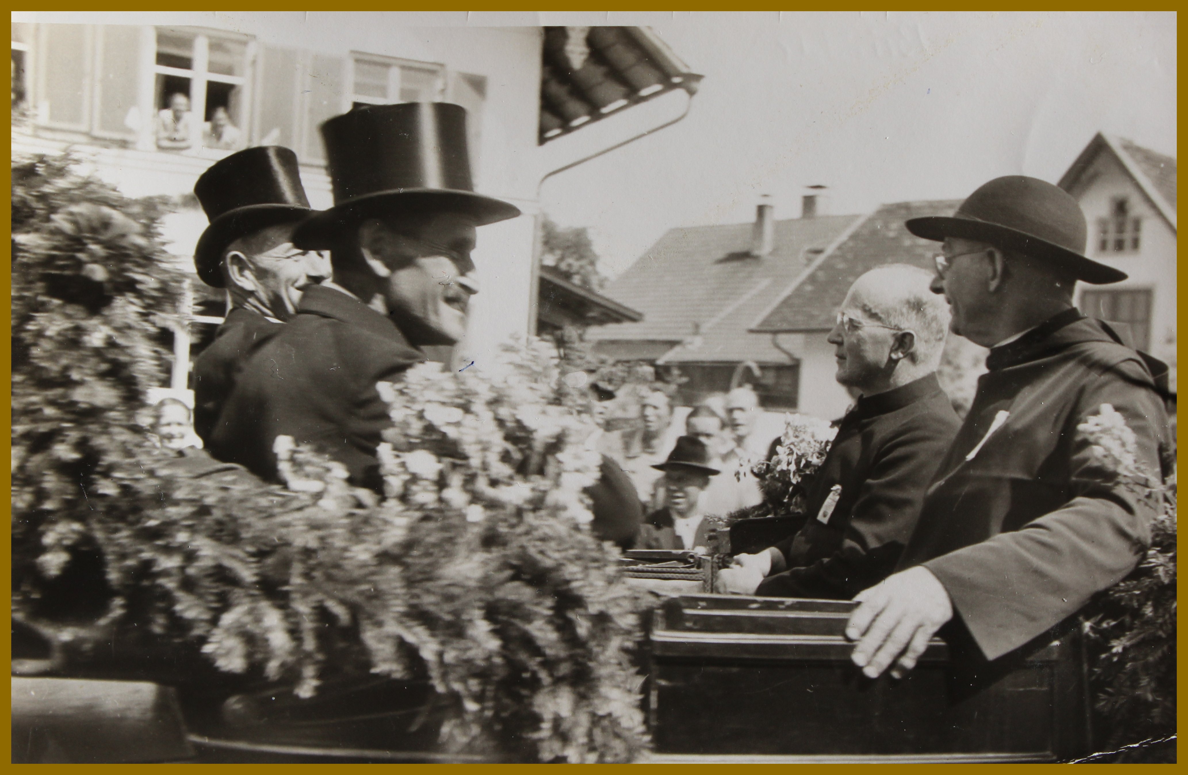 Die Ehrengäste bei der Prozession sitzen in einer Kutsche. Rechts Pater Urban und Pfarrer