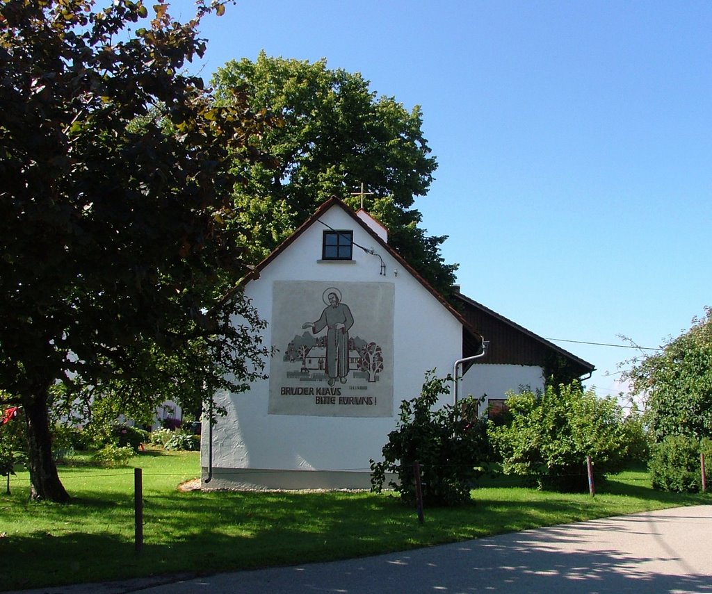 Walkenberg war einst berühmt für seine tausendjährige Linde. Einweihung der Bruder Klauskapelle. Pfarrer Kracker vor der Bruder Klauskapelle in Walkenberg. Bischof Freundorfer steigt ein in das Auto mit der Standarte.