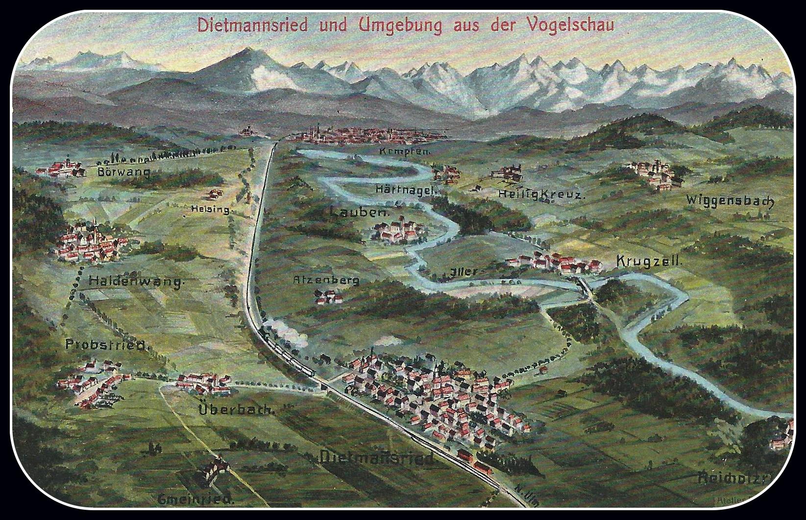 - Bahn Ungerhausen - Ottobeuren , aus der Vogelschau 1908