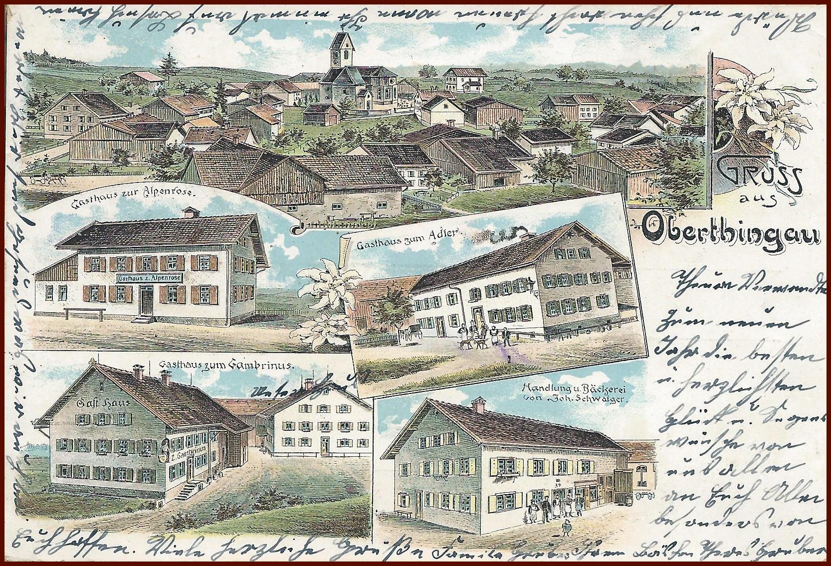 Oberthingau ist ein Doppelstraßendorf und liegt etwa 2 km südlich von Unterthigau.