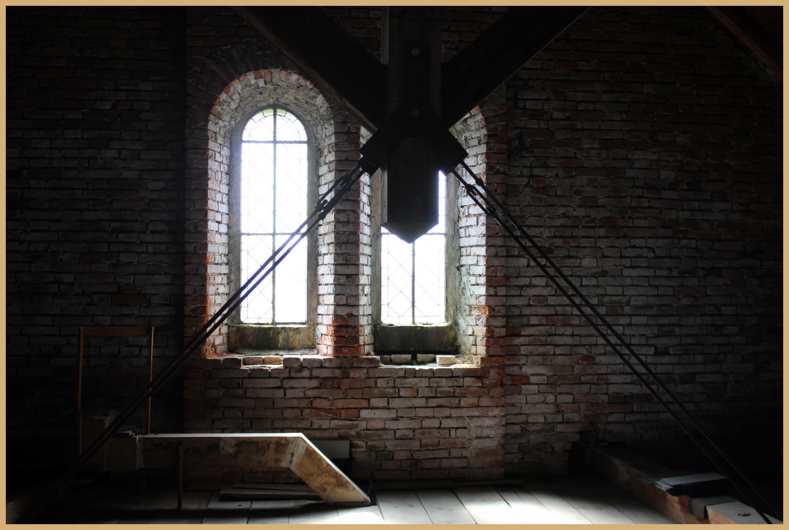 - Altes Foto der Kirche: Insgesamt waren sechs Fenster in der Westseite.