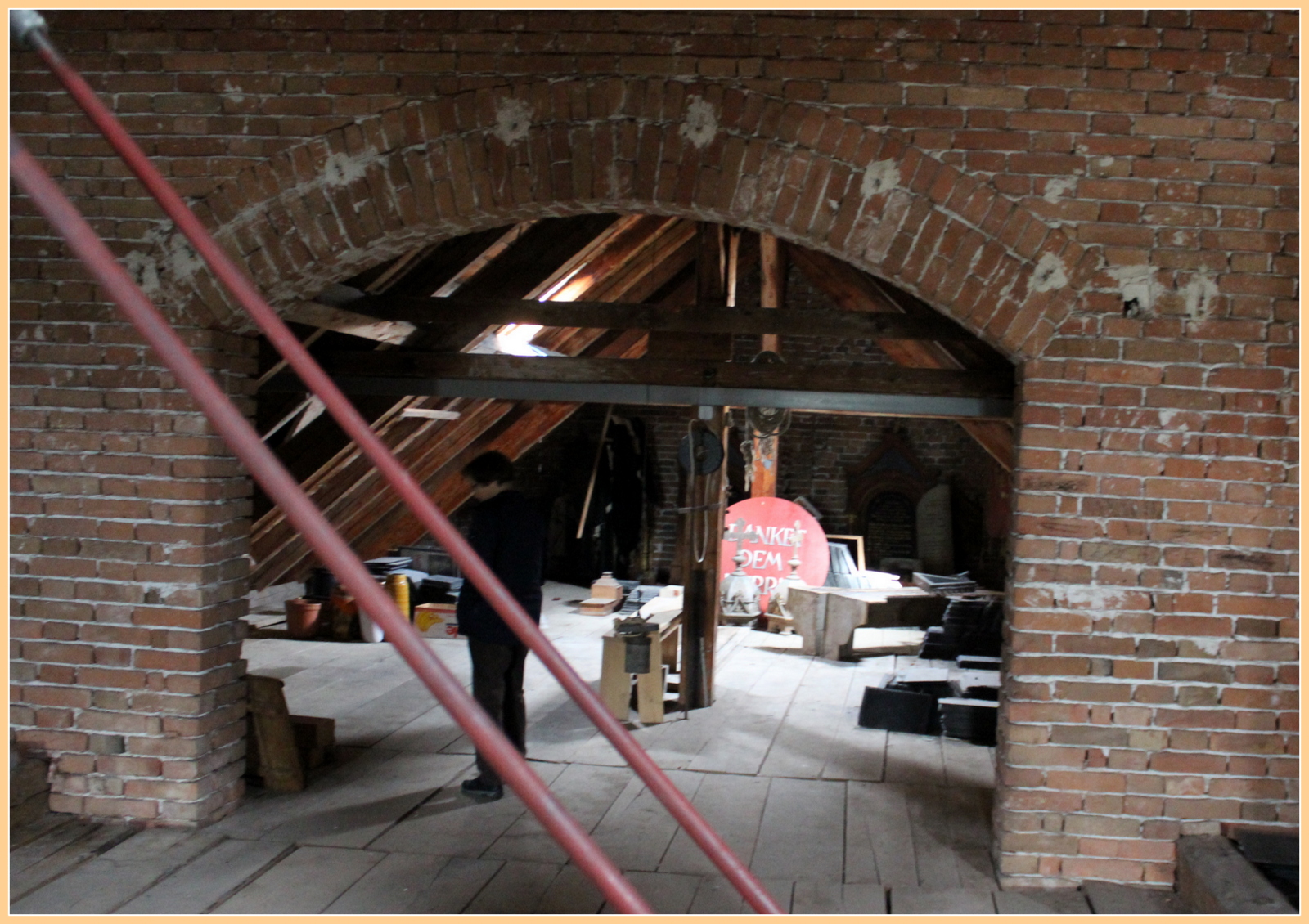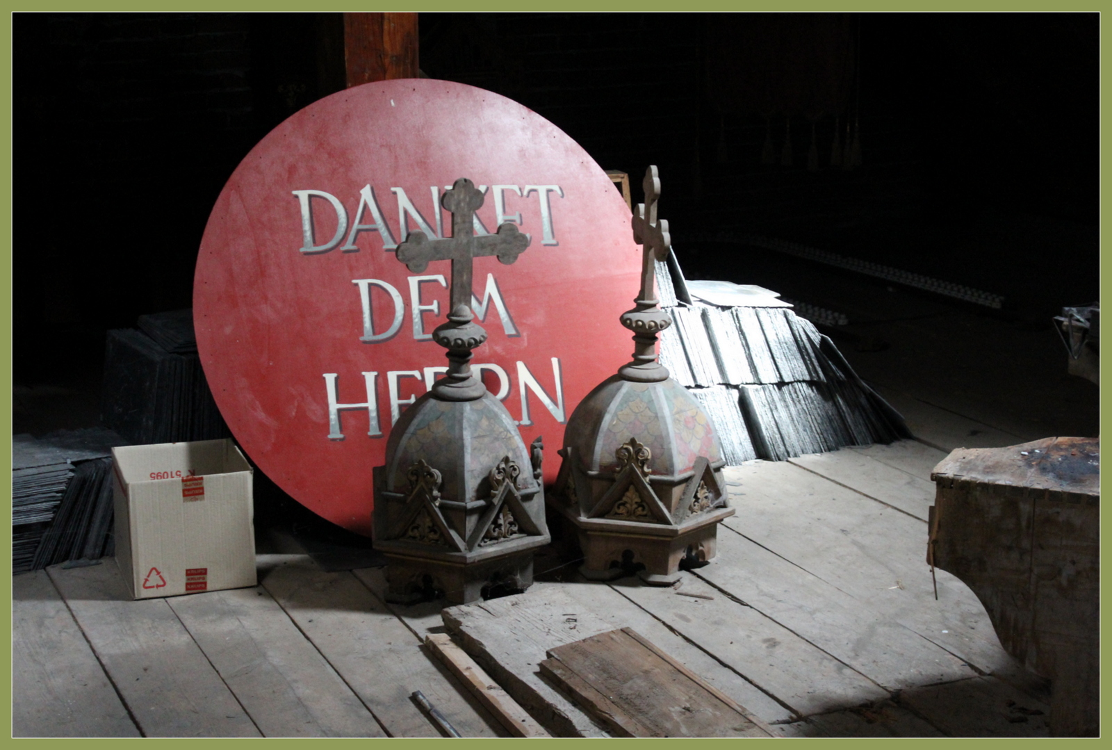 Der Dachboden der Kirche beherbergt eine Reihe von sakralen Gegenständen, die man momentan nicht braucht.