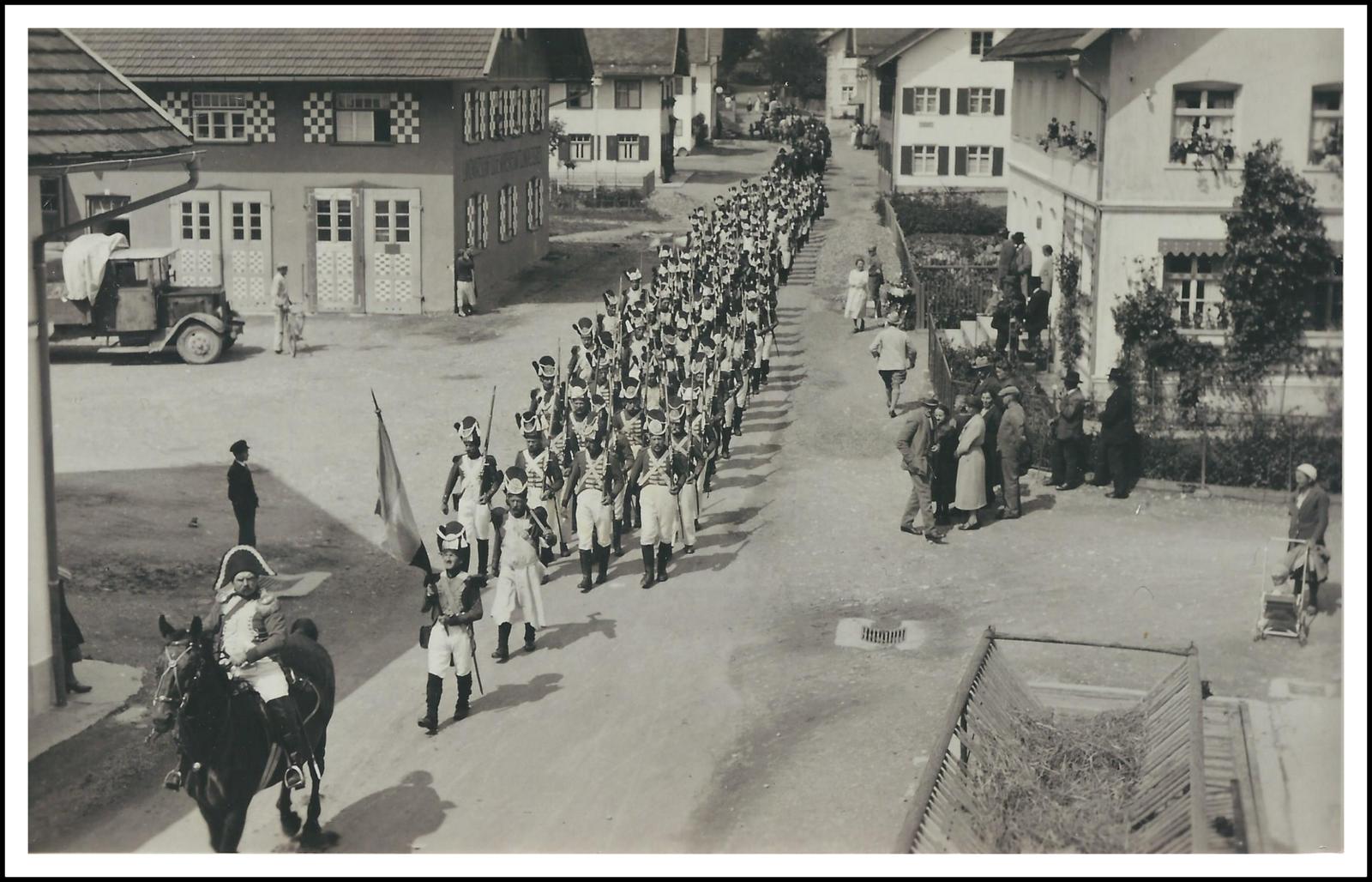 1933 Einmarsch der Soldaten auf der Hauptstraße