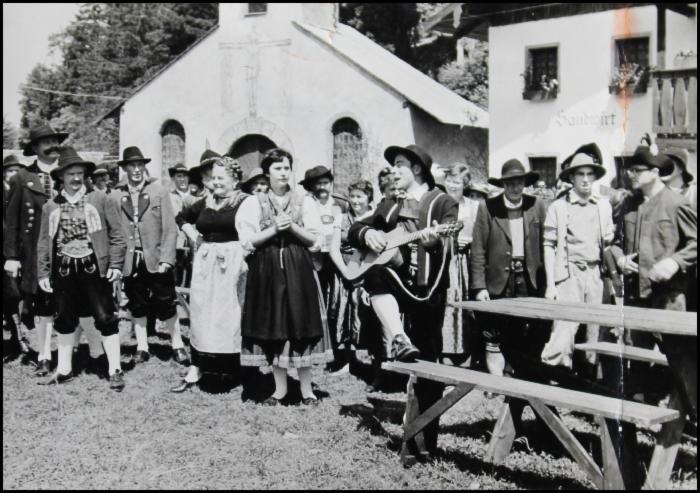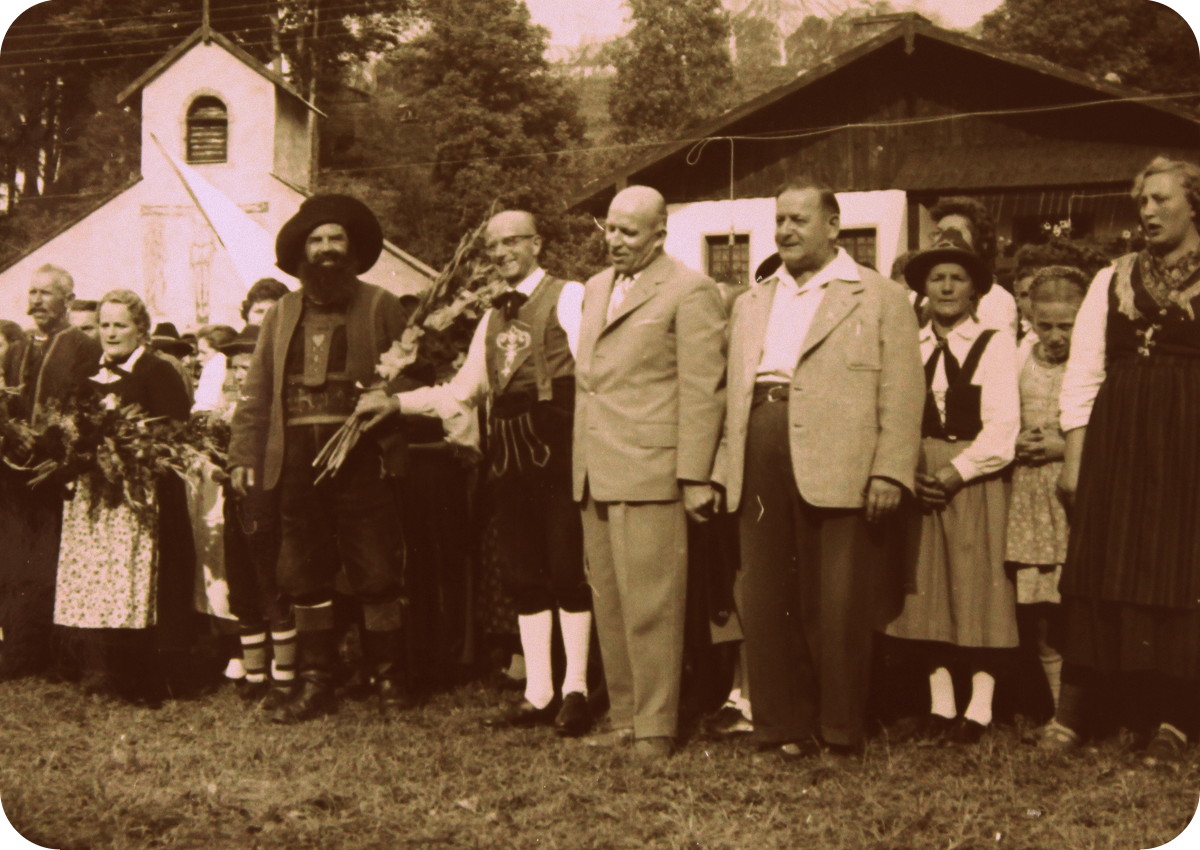 Frau Maria Gassner, geborene Lingg,war die älteste Teilnehmerin. Auf dem alten Schwarzweiß Foto steht sie auf der linken Seite neben ihren Eltern und Geschwistern. Archiv