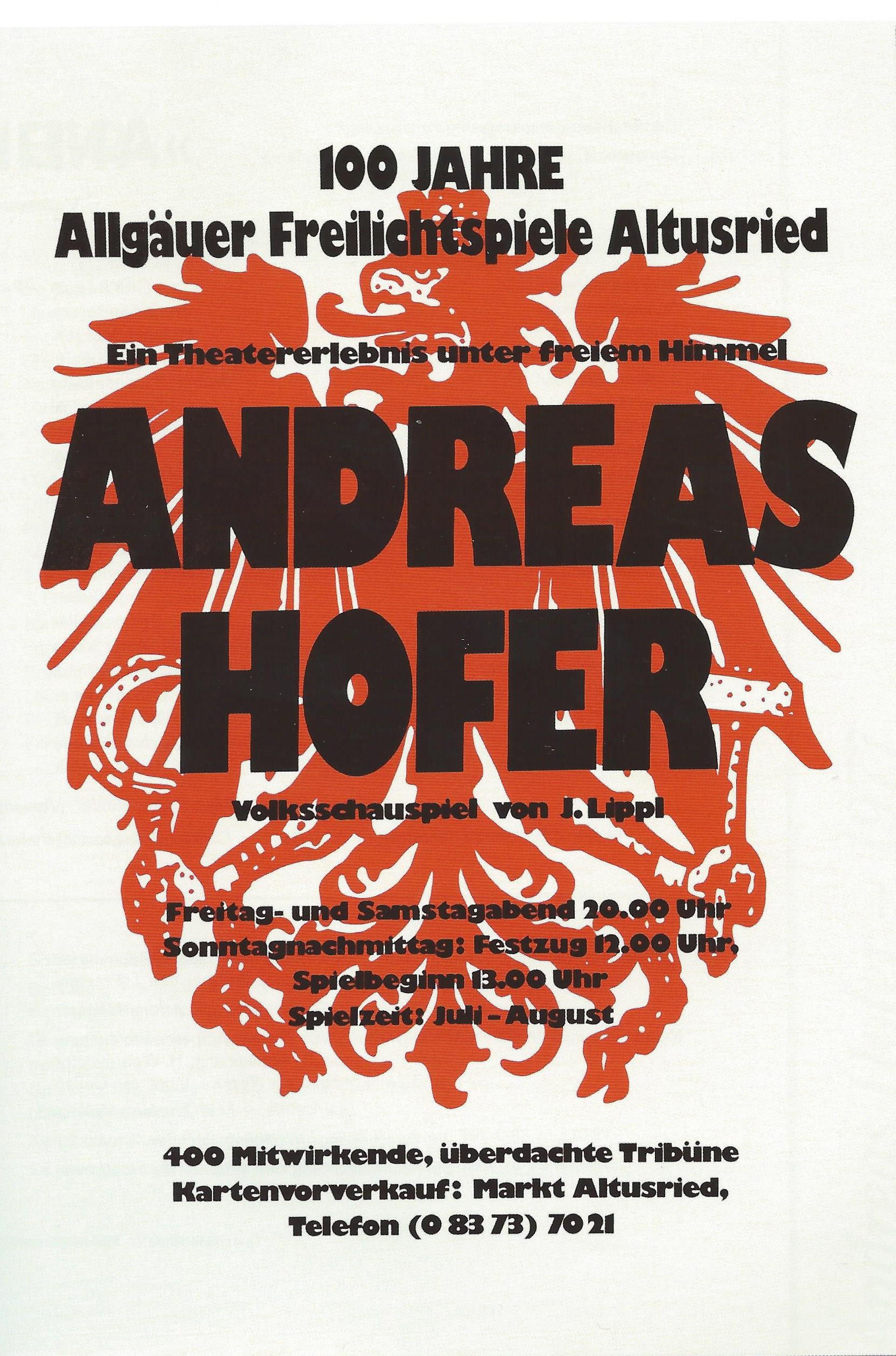 1911 spielte man zum ersten Mal Andreas Hofer. Hauptdarsteller war Phillip Vötter, allgemein bekannt unter dem Namen Stampfer. Er war Landwirt und betrieb dazu eine Mahl- und Knochenstampfmühle im Tal. Das Gebäude wurde 1999 abgerissen. Ein Teil seines ehemaligen Besitzes ist heute Freilichtspielgelände. Das zweite Bild zeigt den ursprünglichen Spielort die Höllwiesen im Tal.
