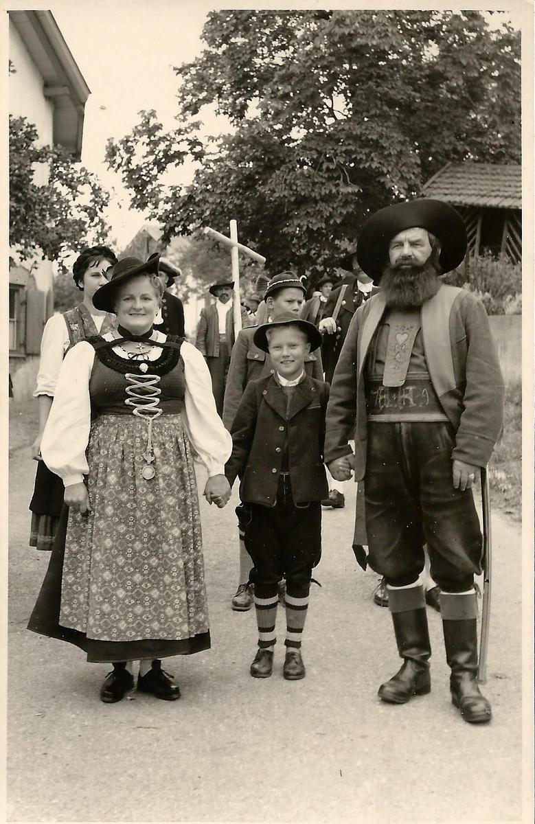 1959 Den Festzug führen an Gretl Riedmiller, Christian Würzner und Heini Flik