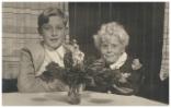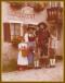 Schwarz-Weiß Bild, schon leicht vergilbt, auf der Rückseite Text und Adresse
