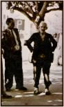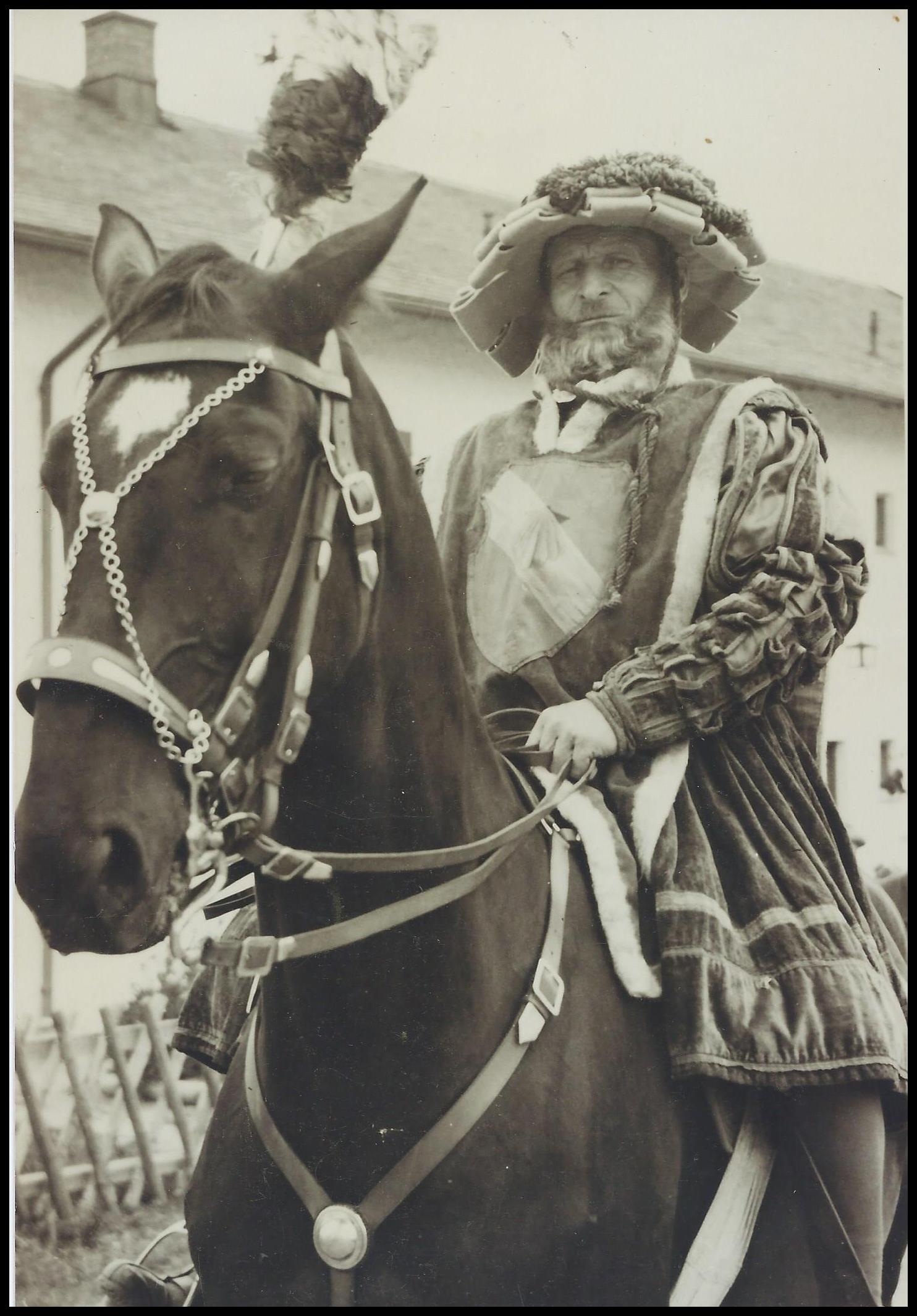 4. Joseph Zimmermann empfängt in bayerischer Tacht die Gäste vor dem Bahnhof Kempten.