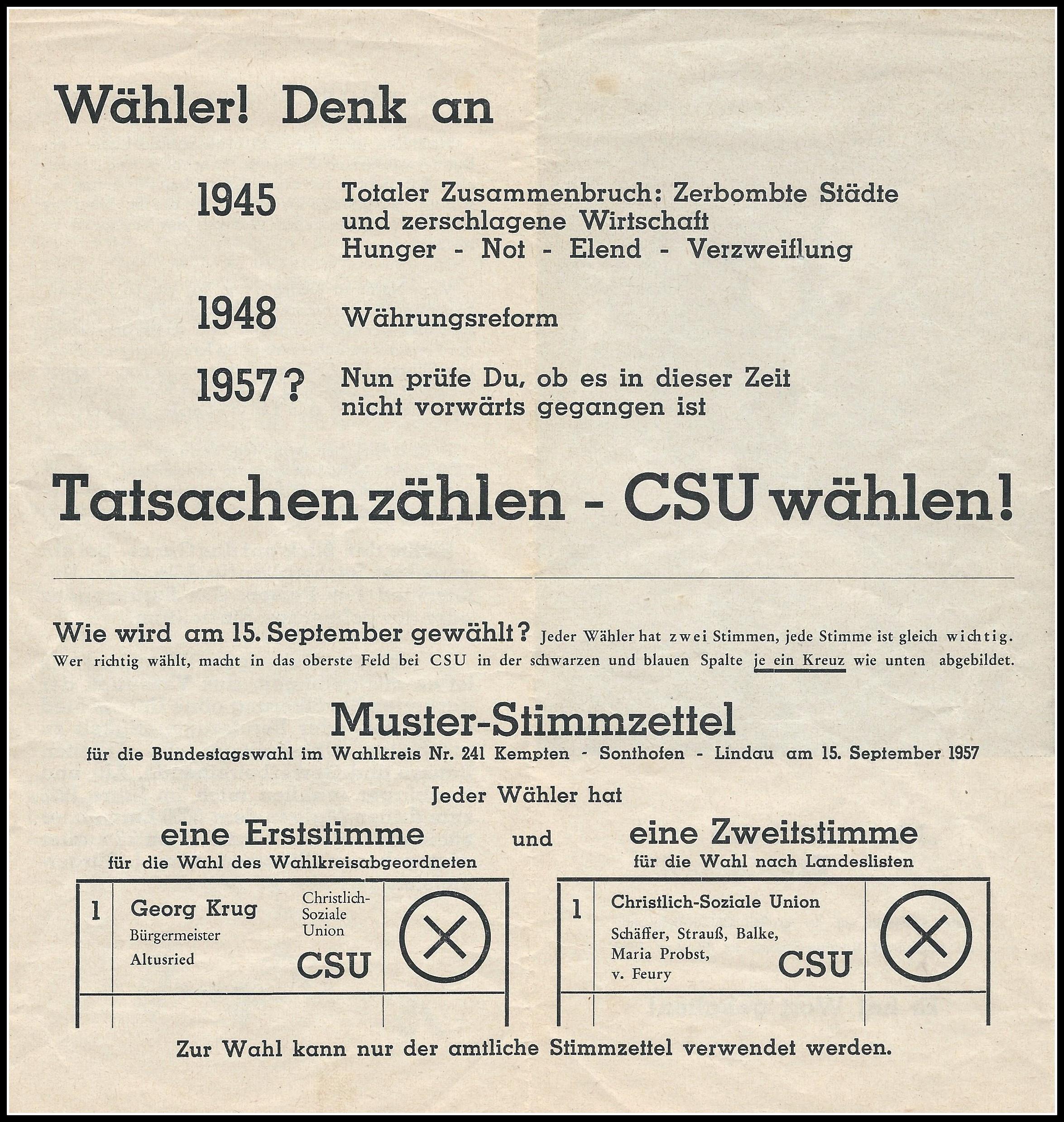 Wahlkampfbroschüre aus dem Jahre 1957, Bürgermeister in Altusried von 1948 bis 1972, Abgeordneter des Bundestages von 1957 bis 1969