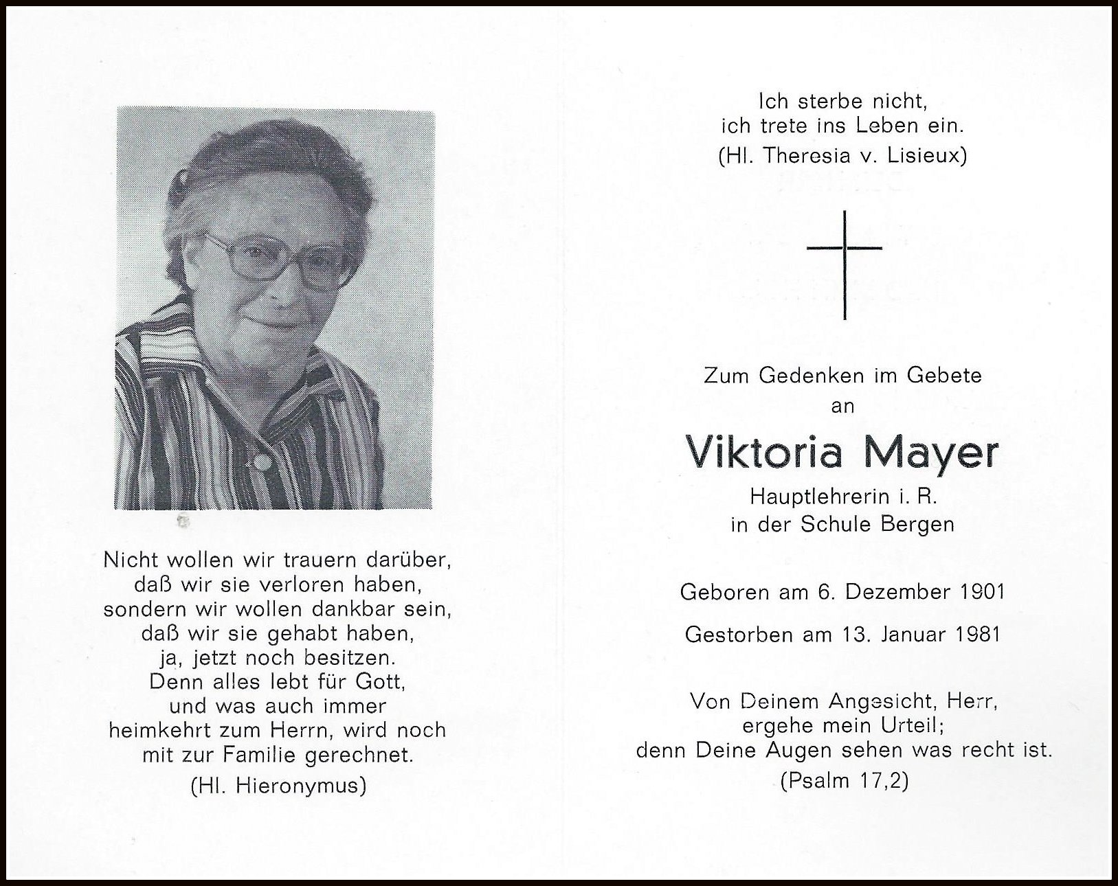 - Viktoria Mayer, Hauptlehrerin von Bergen, 1901 - 1981