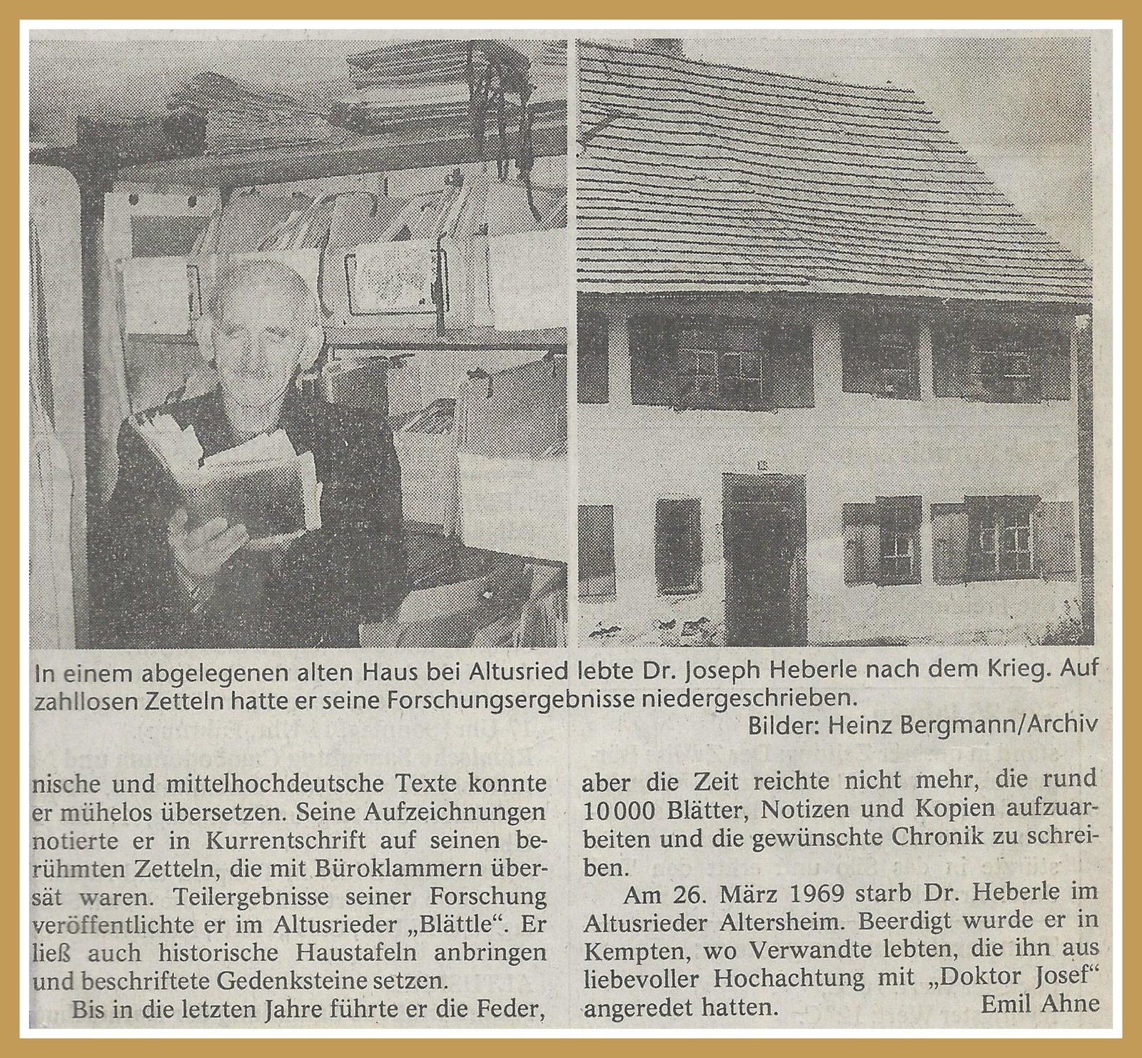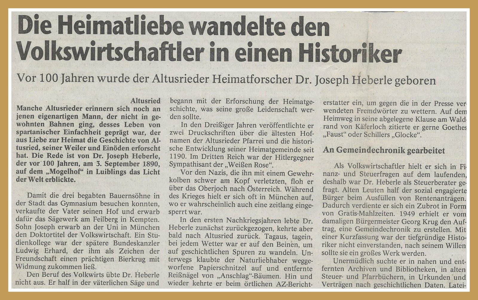 Emil Ahne schreibt in der Allgäuer Zeitung einen Bericht über Dr. Joseph Heberle.Bericht mit freundlicher Genehmigung von der AZ.