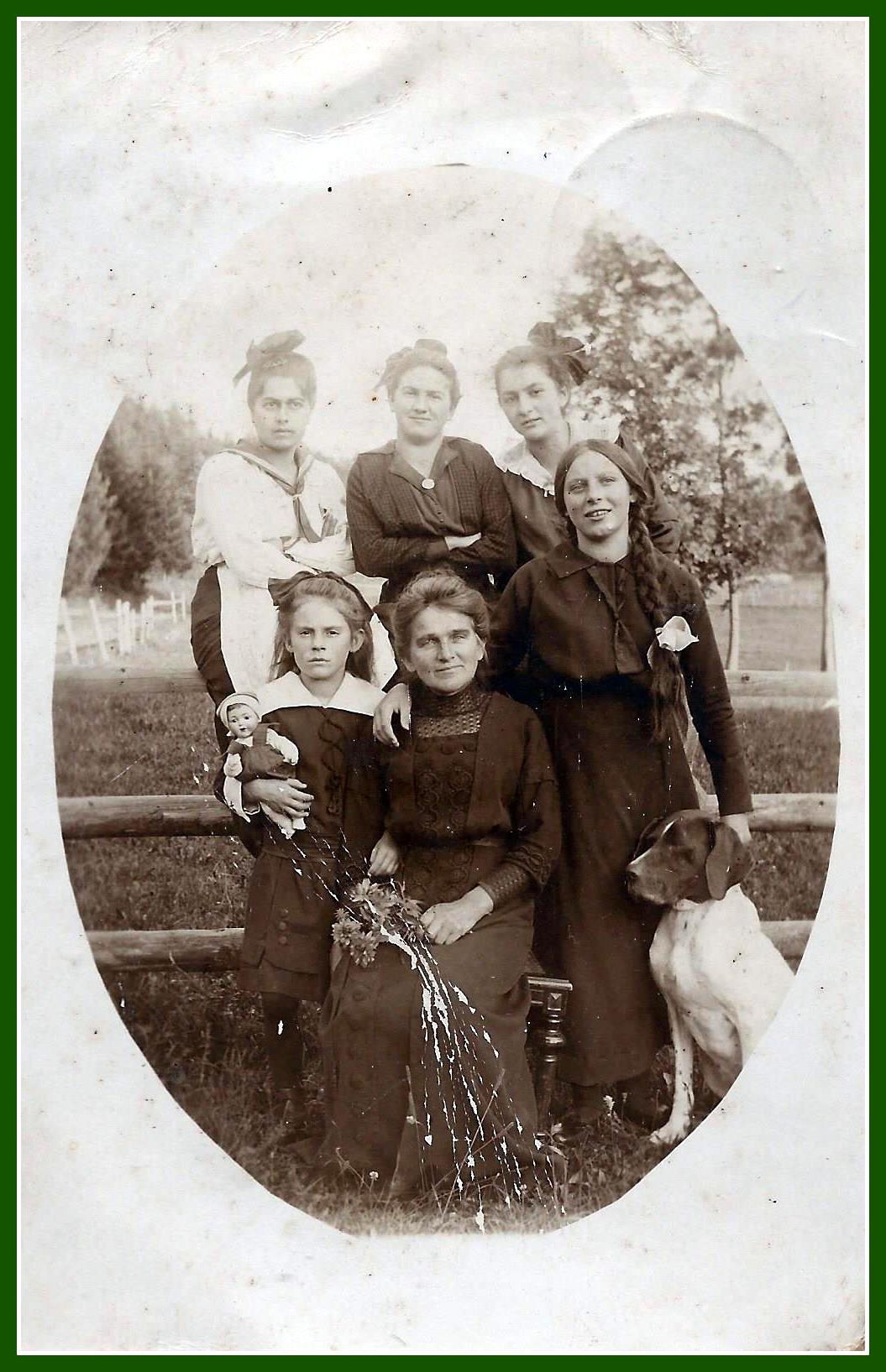 Die spätere Lehrerin Viktoria ist hier im Kreise ihrer Familie zu sehen. Sie hat den Arm auf die Schulter ihrer Mutter gelegt. Der Vater ist wohl noch im Krieg. Text: