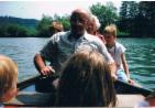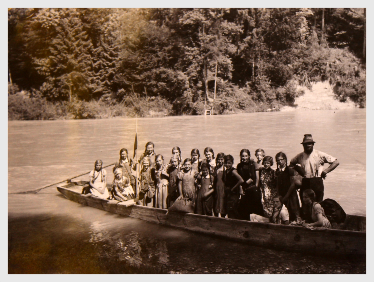 5. Innozenz K. fährt eine Jugendgruppe über die Iller, im Hintergrund die Steilwände