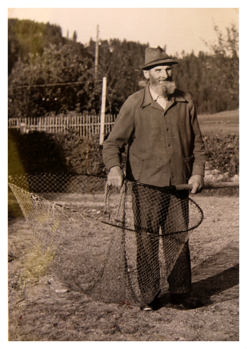 - Mit dem Fischernetz. Kreuzer war Flößer, Fährmann und Fischer.