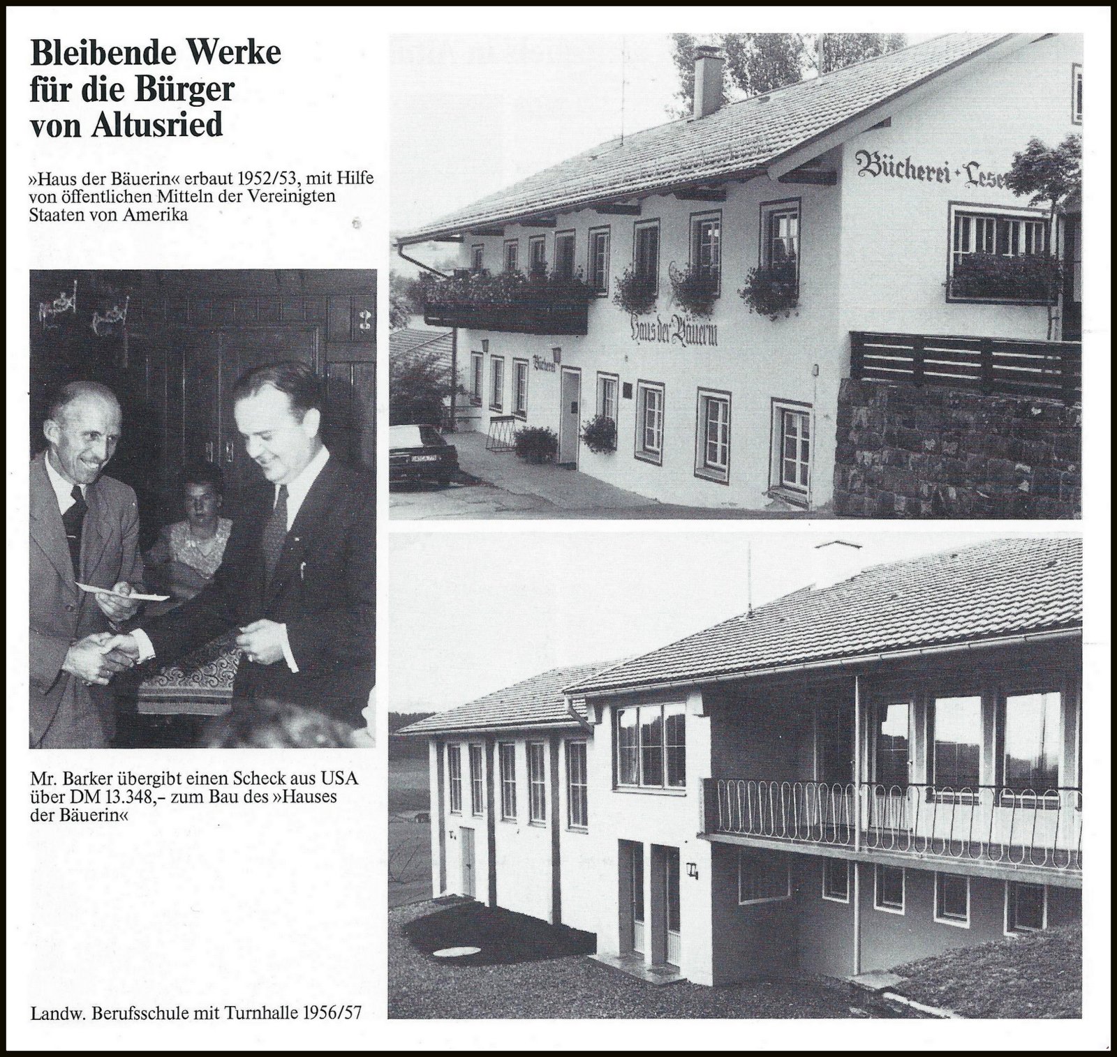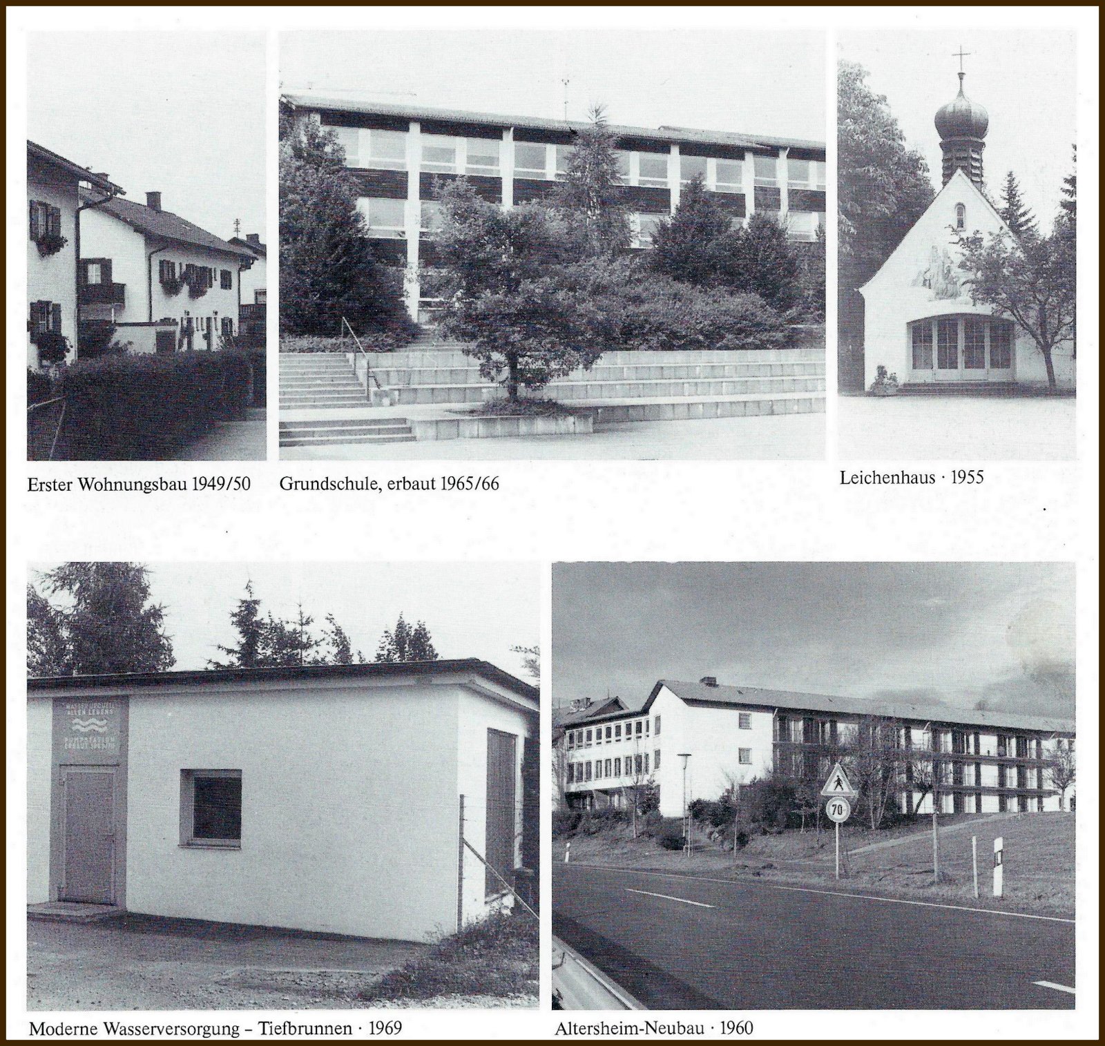 Haus der Bäuerin, Landwirtschaftliche Berufschule mit Turnhalle 1956/57 , Erster Wohnungsbau 1949/50 , Grundschule erbaut 1965/66 , Leichenhaus 1955 , Tiefbrunnen im Tal 1969 , Altersheim Neubau 1960
