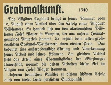 - 1940 erhielt J. M. als Bester im Grabmalwettbewerb für das Allgäu einen Preis.