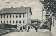 Auf unserem Foto ist die Schule aus. Die Kinder verlassen die Schule. Doch ein Fotograf, sicherlich mit großer Ausrüstung wie damals üblich, hat sich in den Weg gestellt. In der ersten Reihe sind fünf Kinder, sie sind überrascht, erstaunt und vielleicht auch misstrauisch. Sie wissen nicht , sollen sie weiterlaufen oder in Position stehen bleiben; die Mädchen mit Zöpfen und Schürzen, die Buben barfuß, Männer mit Strohhut. Die Straße ist noch ungeteert und ungepflastert. Unter der Türe beim Eingang des Gasthauses zur Sonne steht ein Mädchen, es ist Justine Natterer, später die Sonnenwirtin Justine Hartmann, geboren 1898, gestorben 2000. Sie wurde 102 Jahre alt und hat drei Jahrhunderte erlebt.